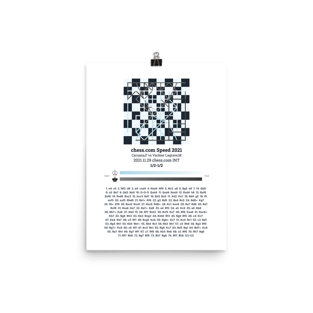 Museum-quality poster on thick, durable matte paper. A sharp, clean look for any chess visualisation.