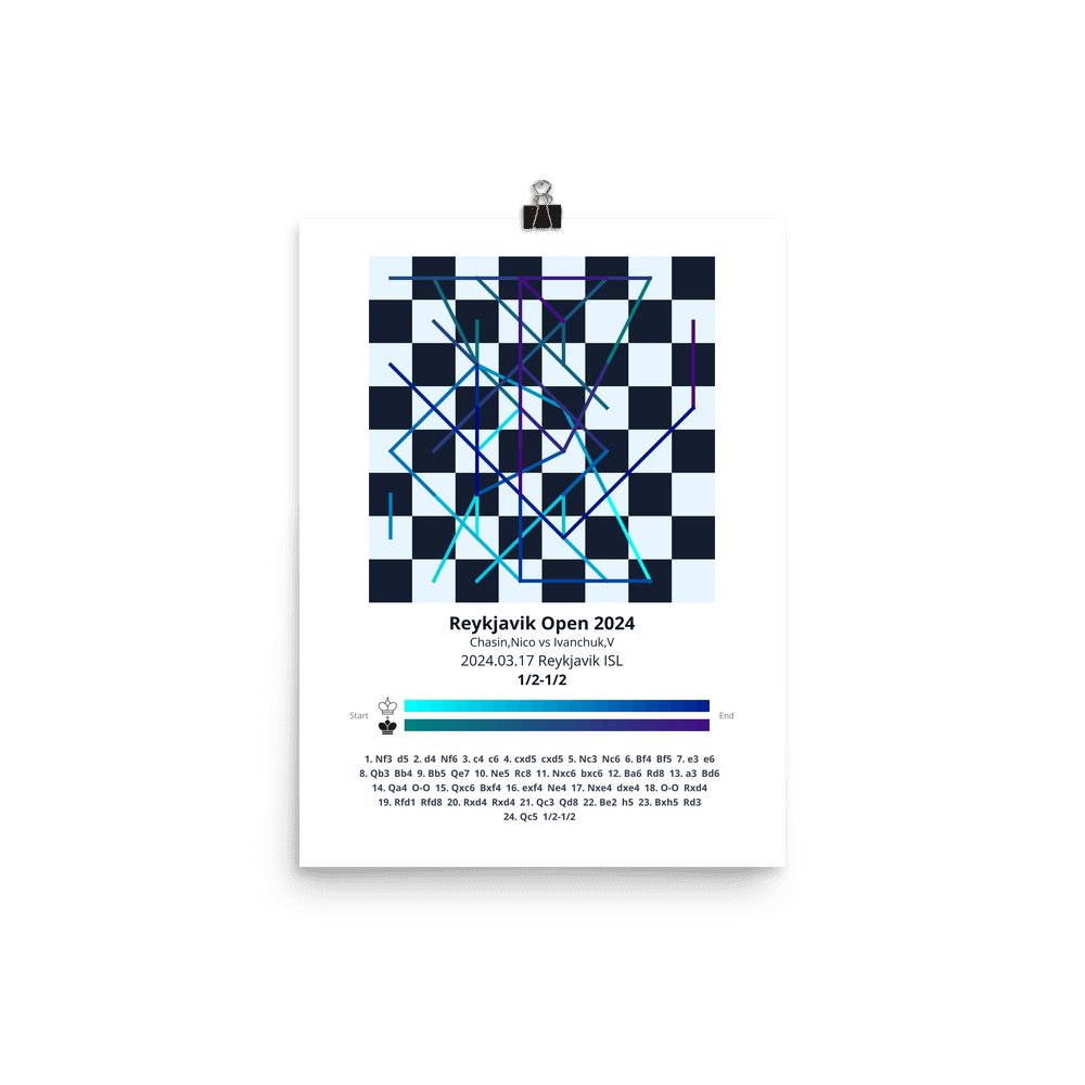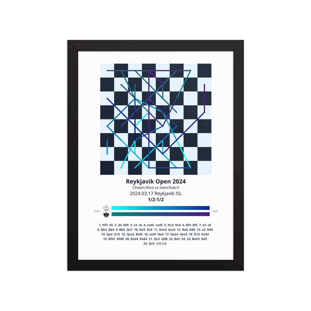 Museum-quality poster on thick, durable matte paper. A sharp, clean look for any chess visualisation.