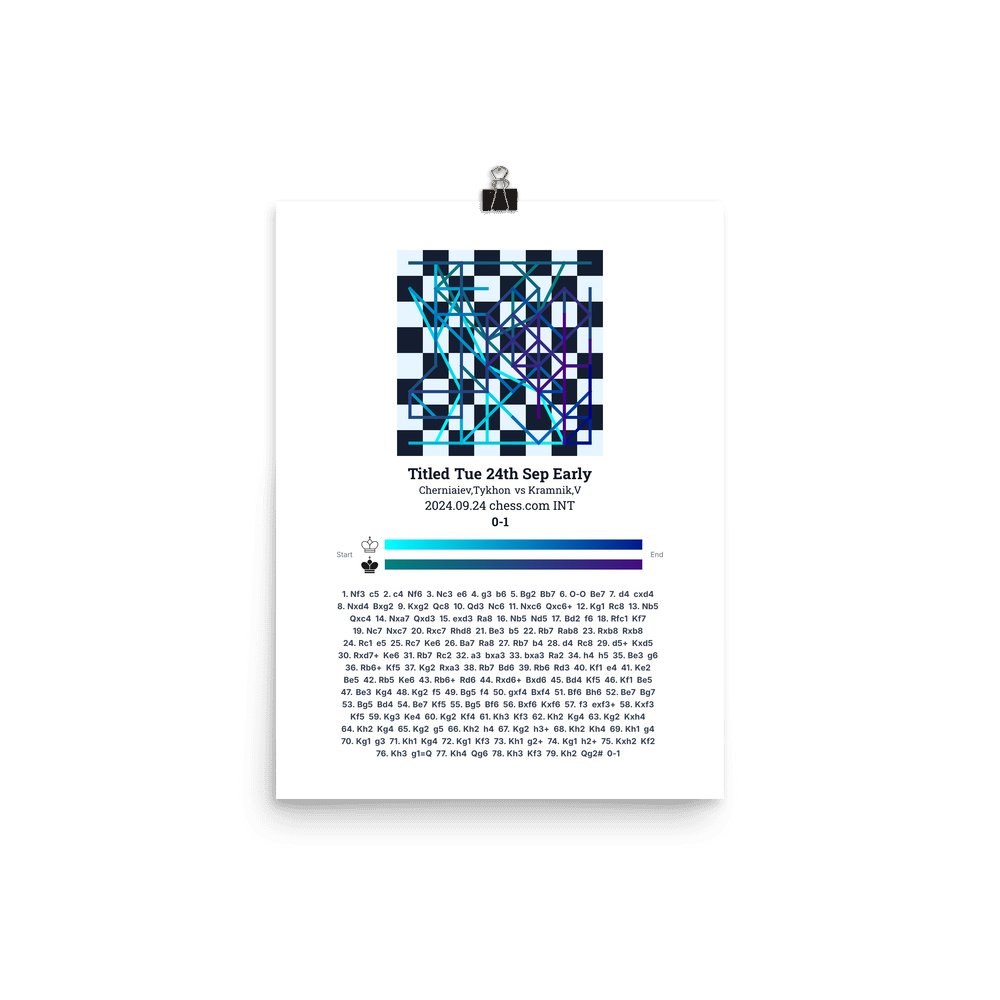 Museum-quality poster on thick, durable matte paper. A sharp, clean look for any chess visualisation.