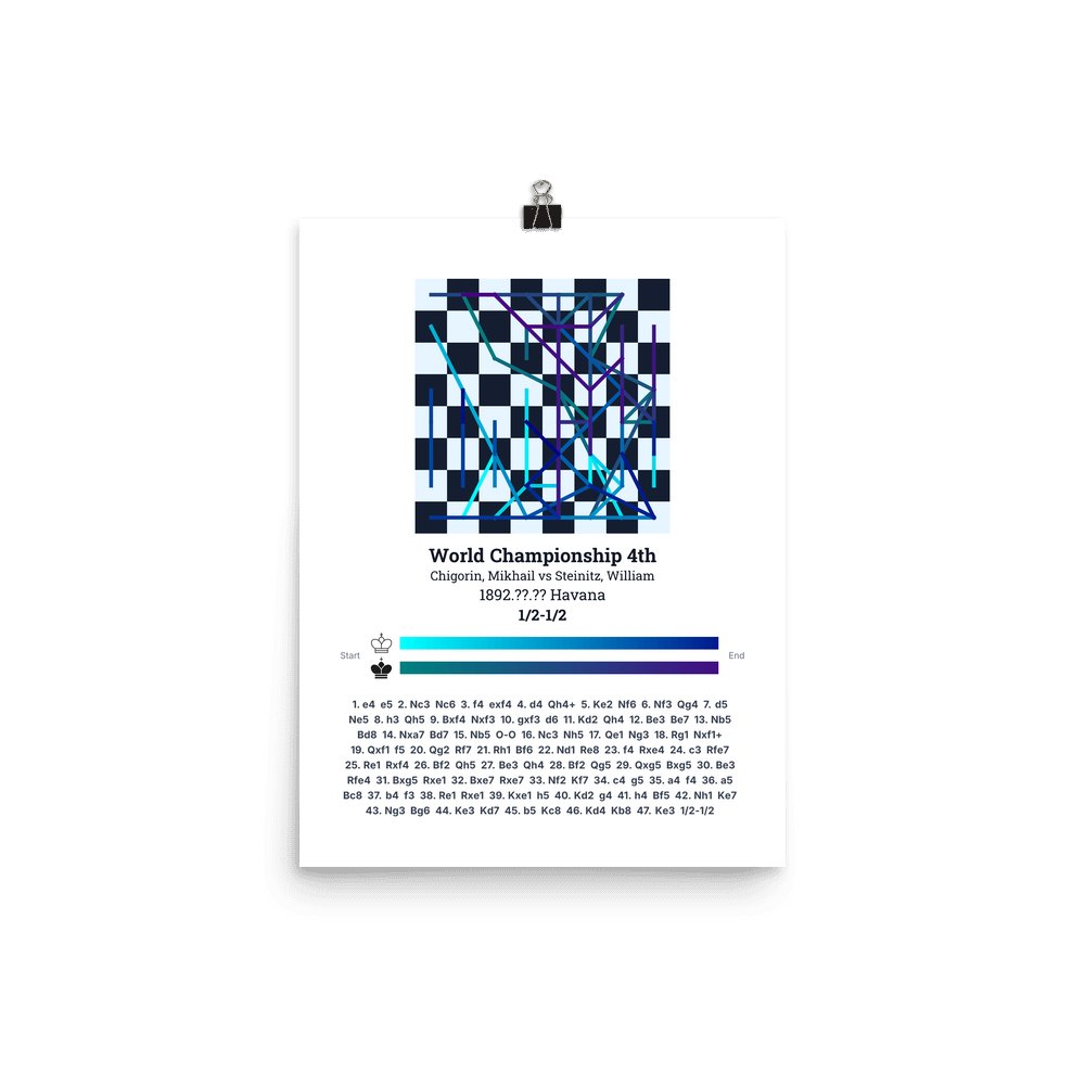 Museum-quality poster on thick, durable matte paper. A sharp, clean look for any chess visualisation.
