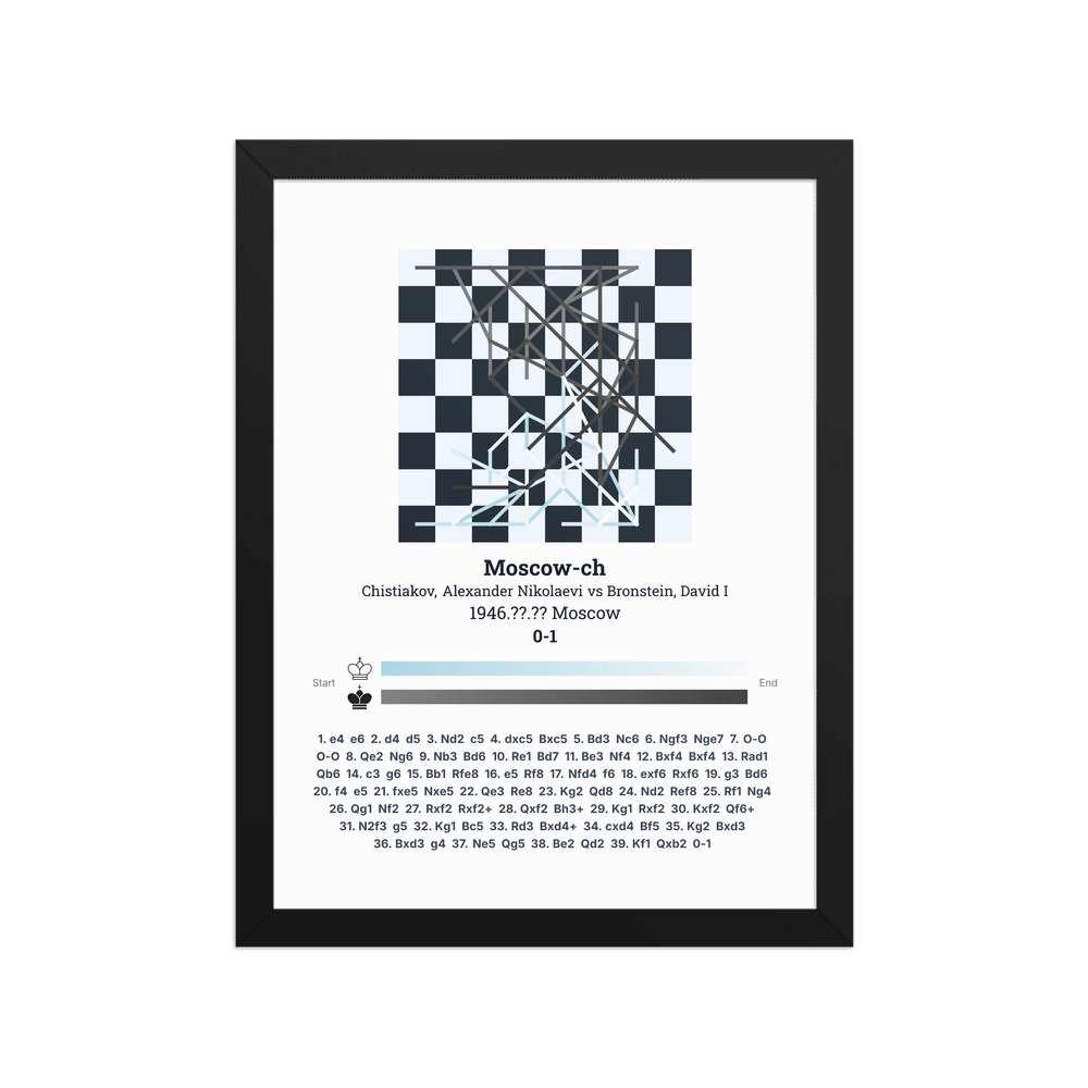 Museum-quality poster on thick, durable matte paper. A sharp, clean look for any chess visualisation.
