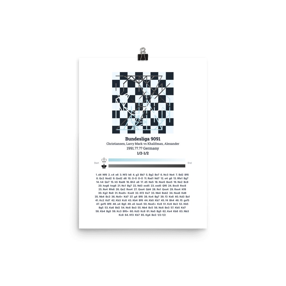 Museum-quality poster on thick, durable matte paper. A sharp, clean look for any chess visualisation.