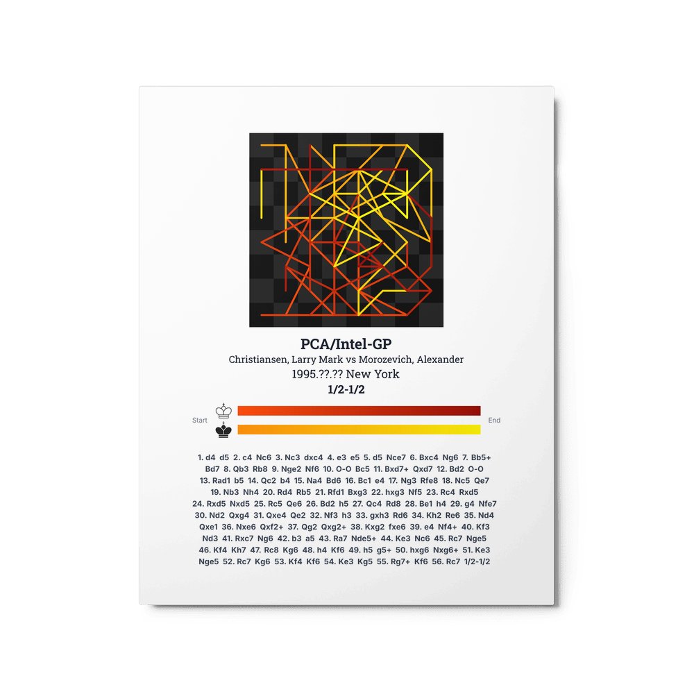 Museum-quality poster on thick, durable matte paper. A sharp, clean look for any chess visualisation.