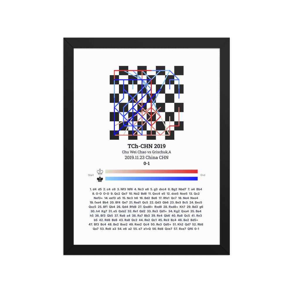 Museum-quality poster on thick, durable matte paper. A sharp, clean look for any chess visualisation.