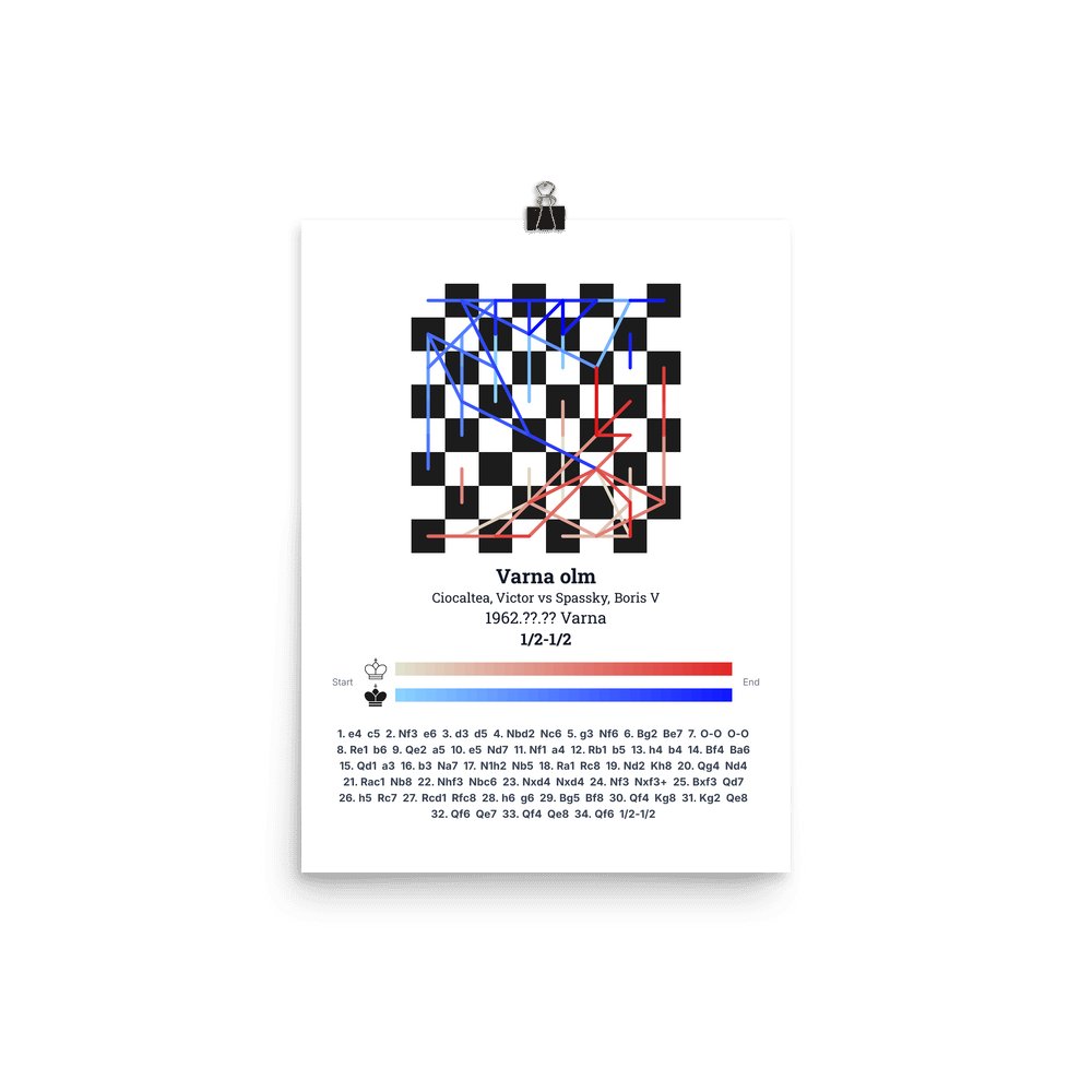 Museum-quality poster on thick, durable matte paper. A sharp, clean look for any chess visualisation.