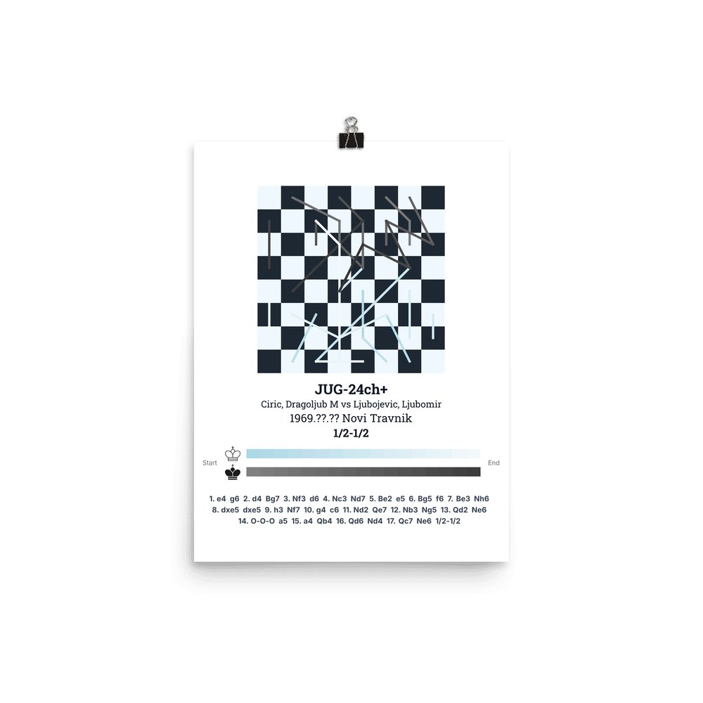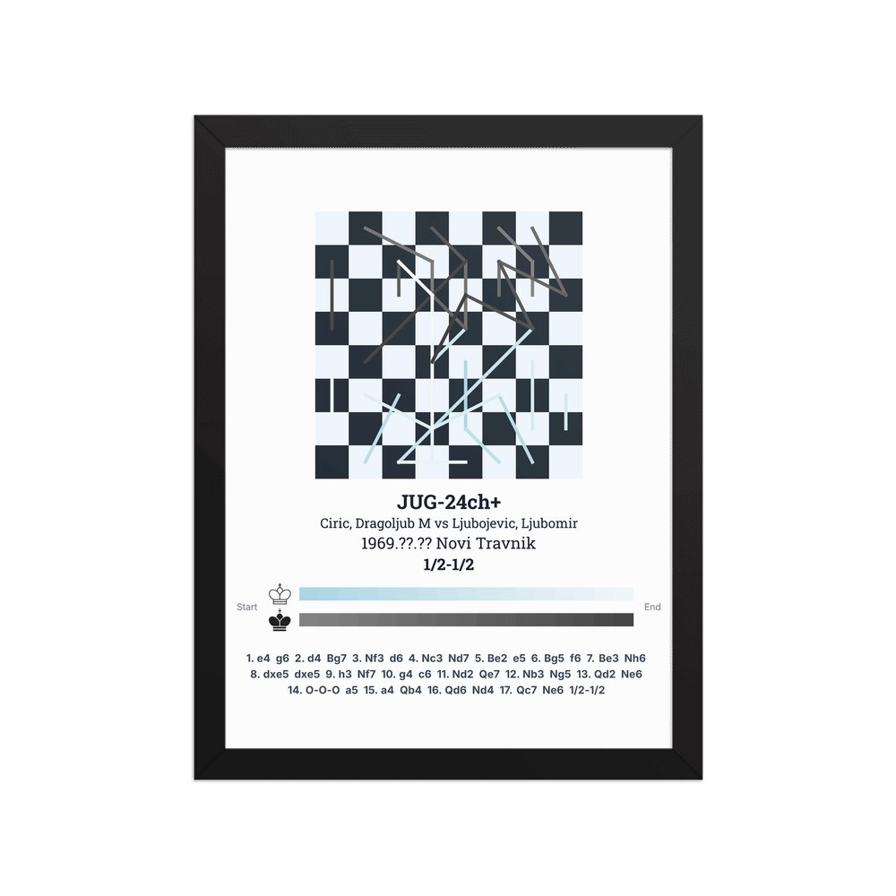 Museum-quality poster on thick, durable matte paper. A sharp, clean look for any chess visualisation.