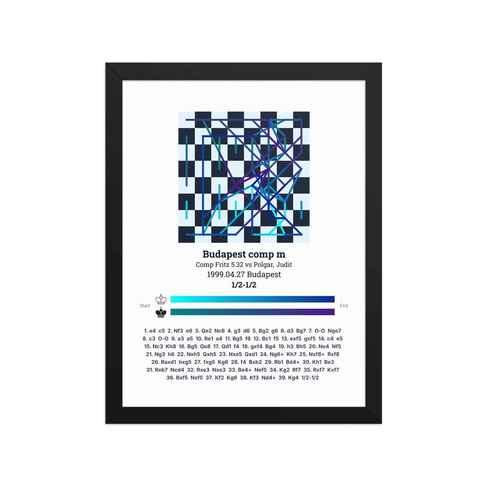 Museum-quality poster on thick, durable matte paper. A sharp, clean look for any chess visualisation.