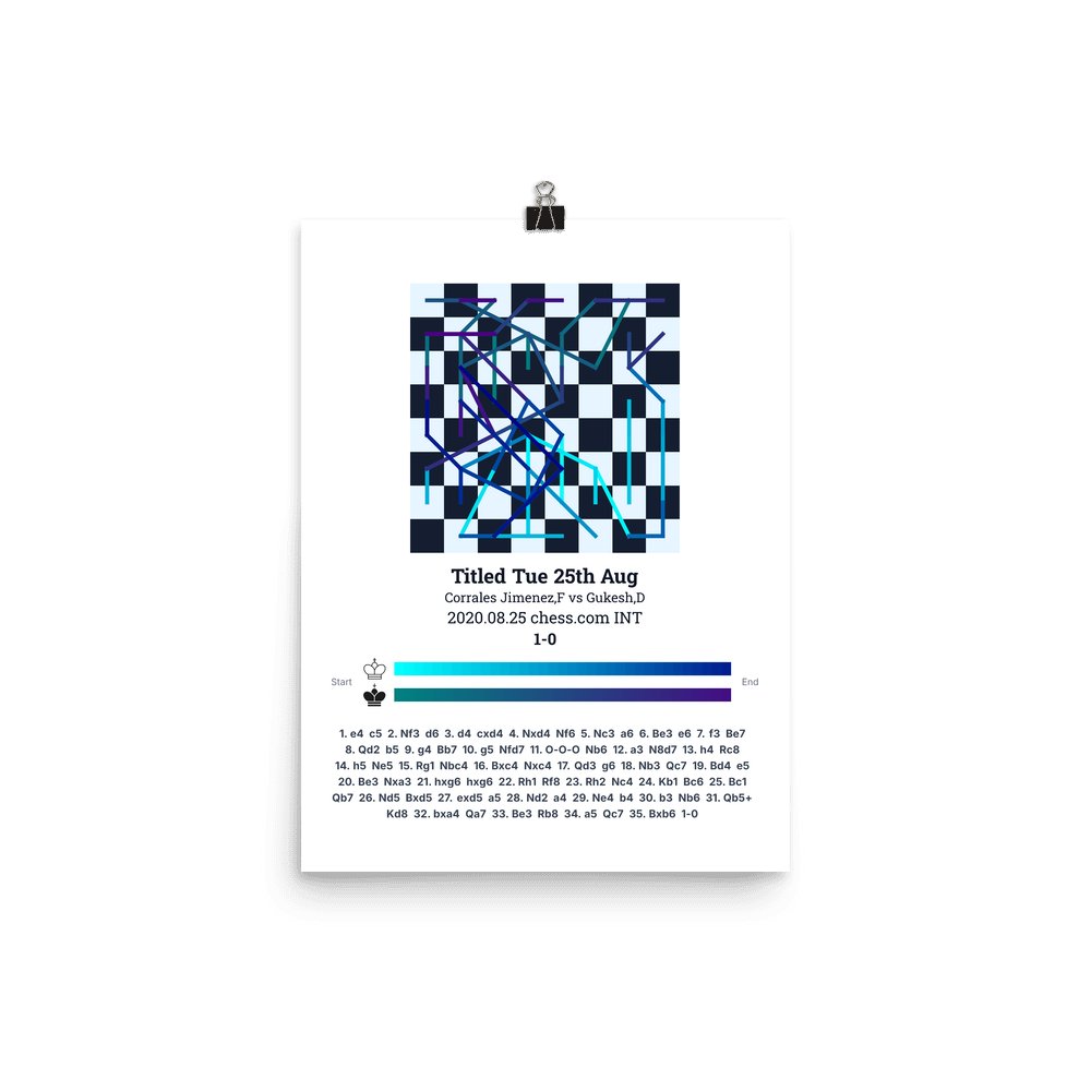 Museum-quality poster on thick, durable matte paper. A sharp, clean look for any chess visualisation.