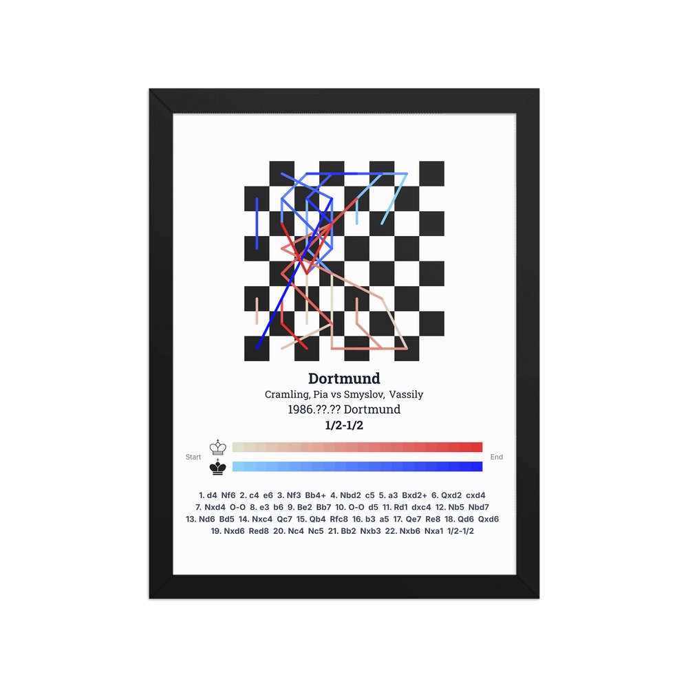 Museum-quality poster on thick, durable matte paper. A sharp, clean look for any chess visualisation.