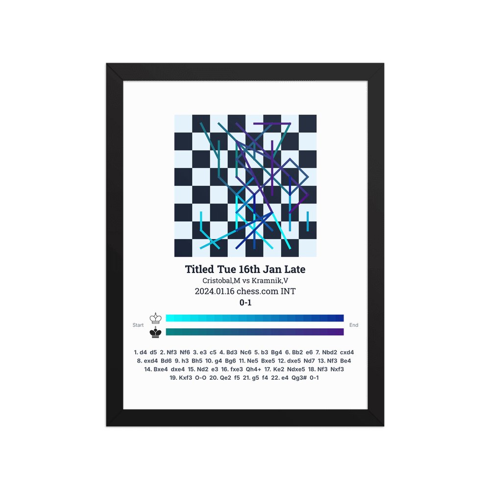 Museum-quality poster on thick, durable matte paper. A sharp, clean look for any chess visualisation.
