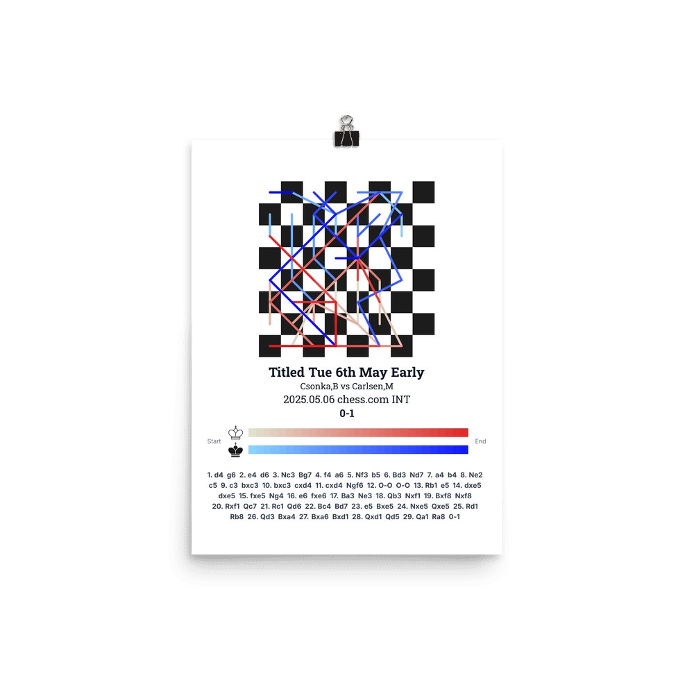 Museum-quality poster on thick, durable matte paper. A sharp, clean look for any chess visualisation.