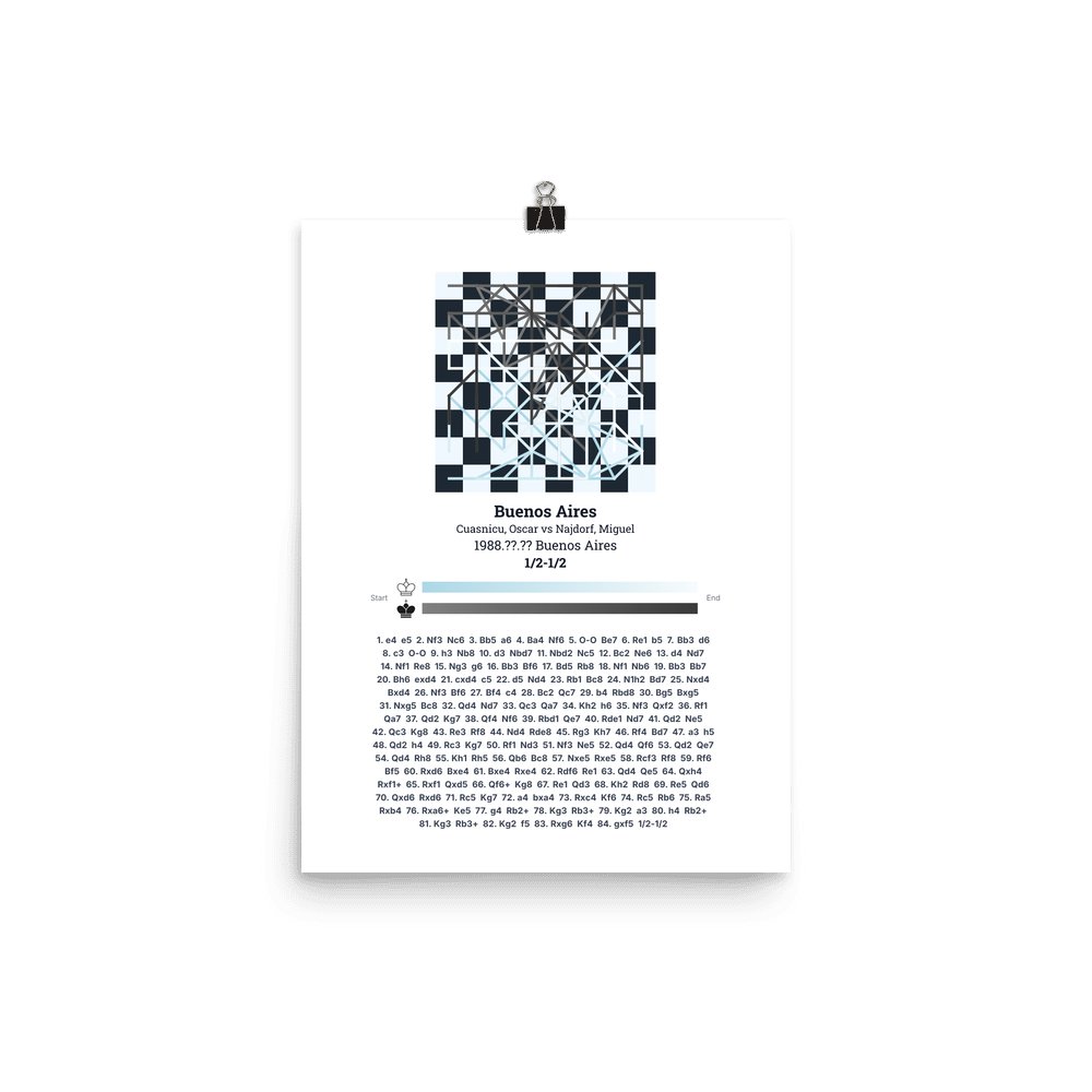 Museum-quality poster on thick, durable matte paper. A sharp, clean look for any chess visualisation.