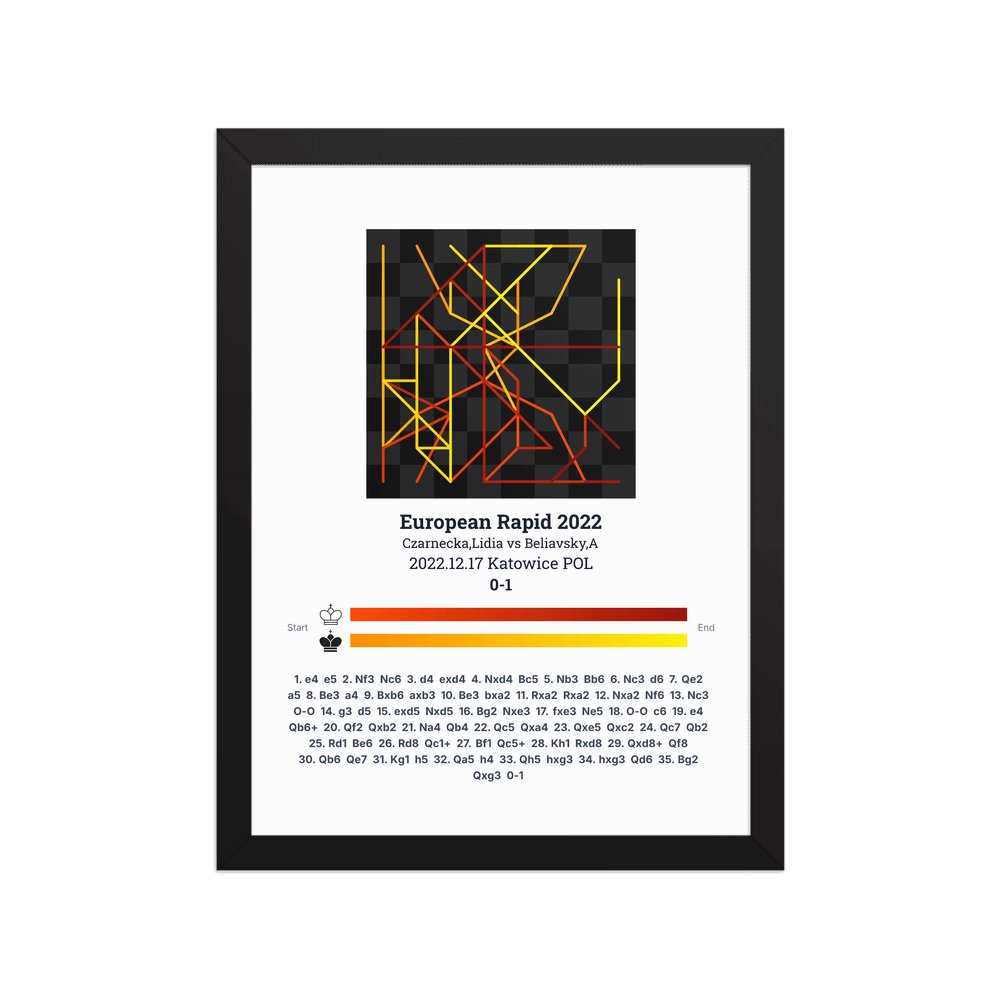 Museum-quality poster on thick, durable matte paper. A sharp, clean look for any chess visualisation.