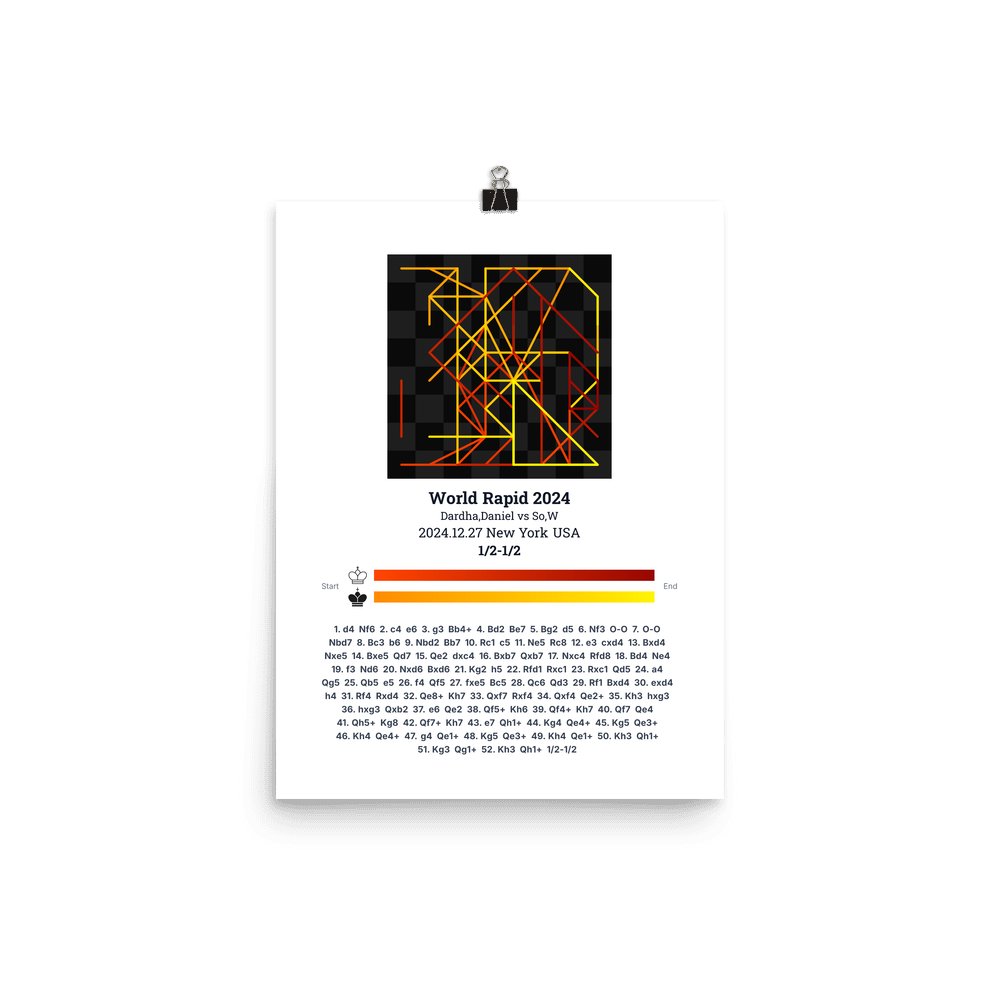 Museum-quality poster on thick, durable matte paper. A sharp, clean look for any chess visualisation.