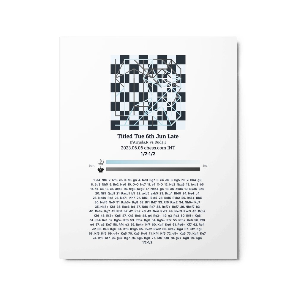 Museum-quality poster on thick, durable matte paper. A sharp, clean look for any chess visualisation.