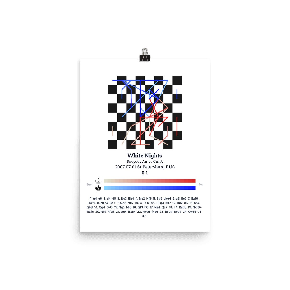Museum-quality poster on thick, durable matte paper. A sharp, clean look for any chess visualisation.