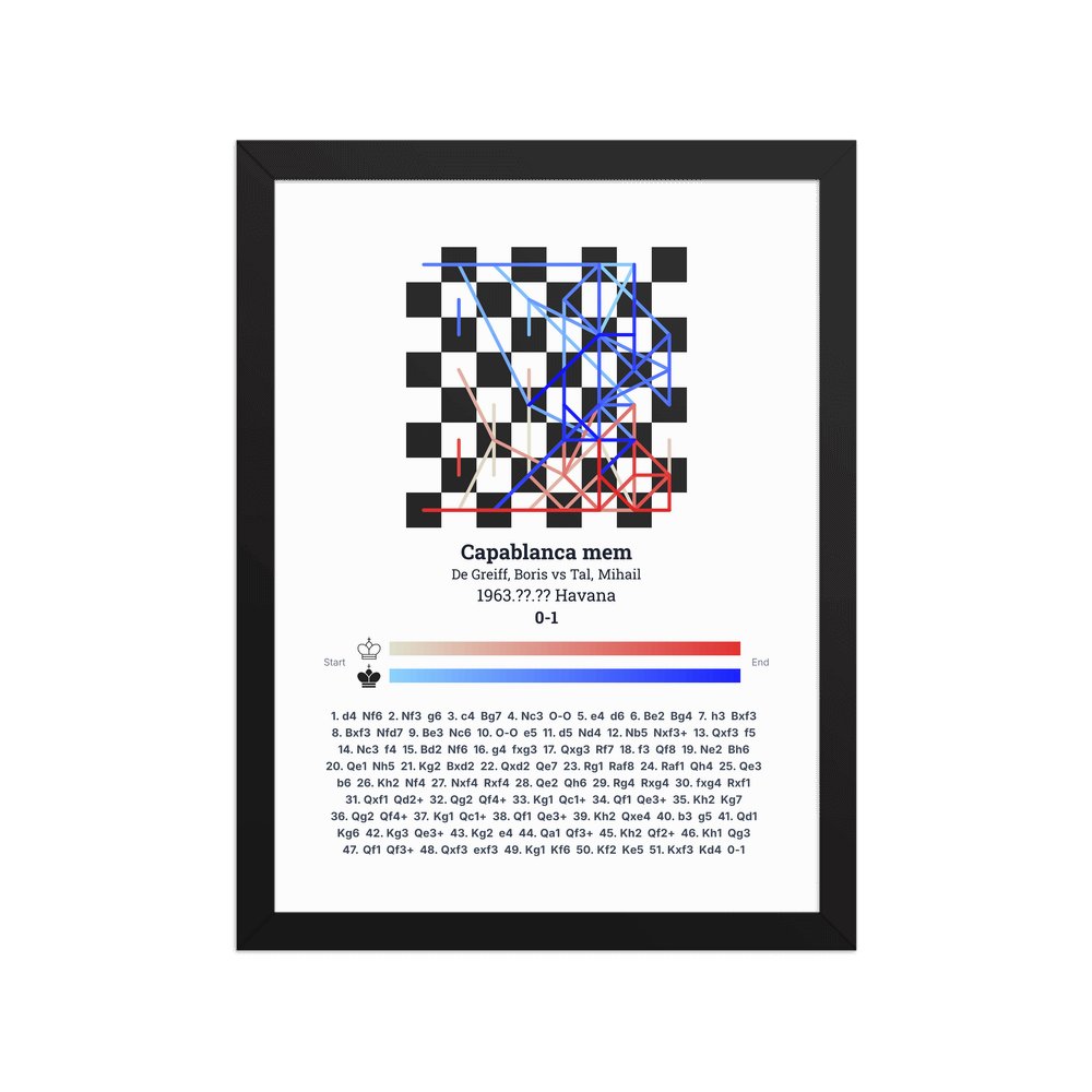 Museum-quality poster on thick, durable matte paper. A sharp, clean look for any chess visualisation.