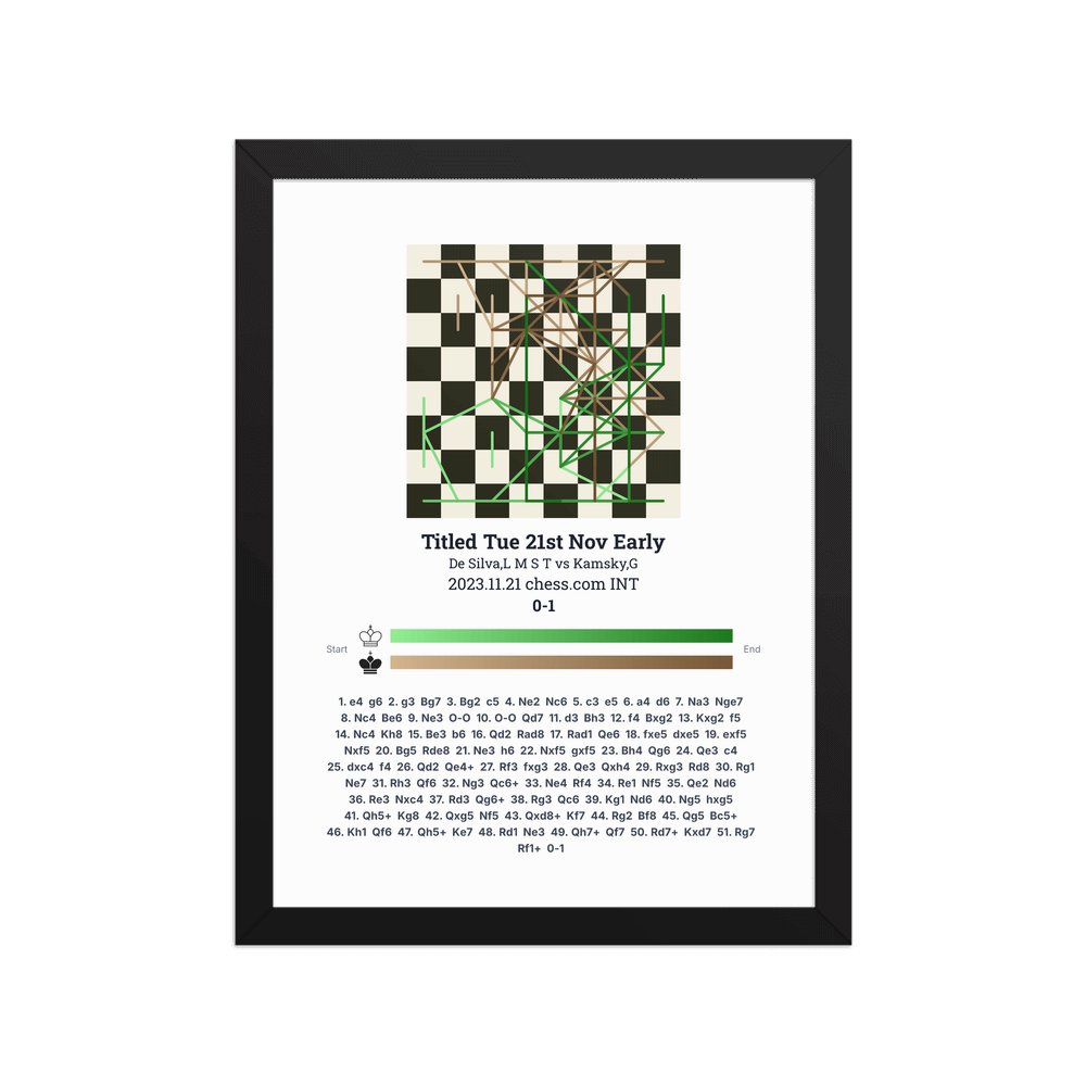 Museum-quality poster on thick, durable matte paper. A sharp, clean look for any chess visualisation.