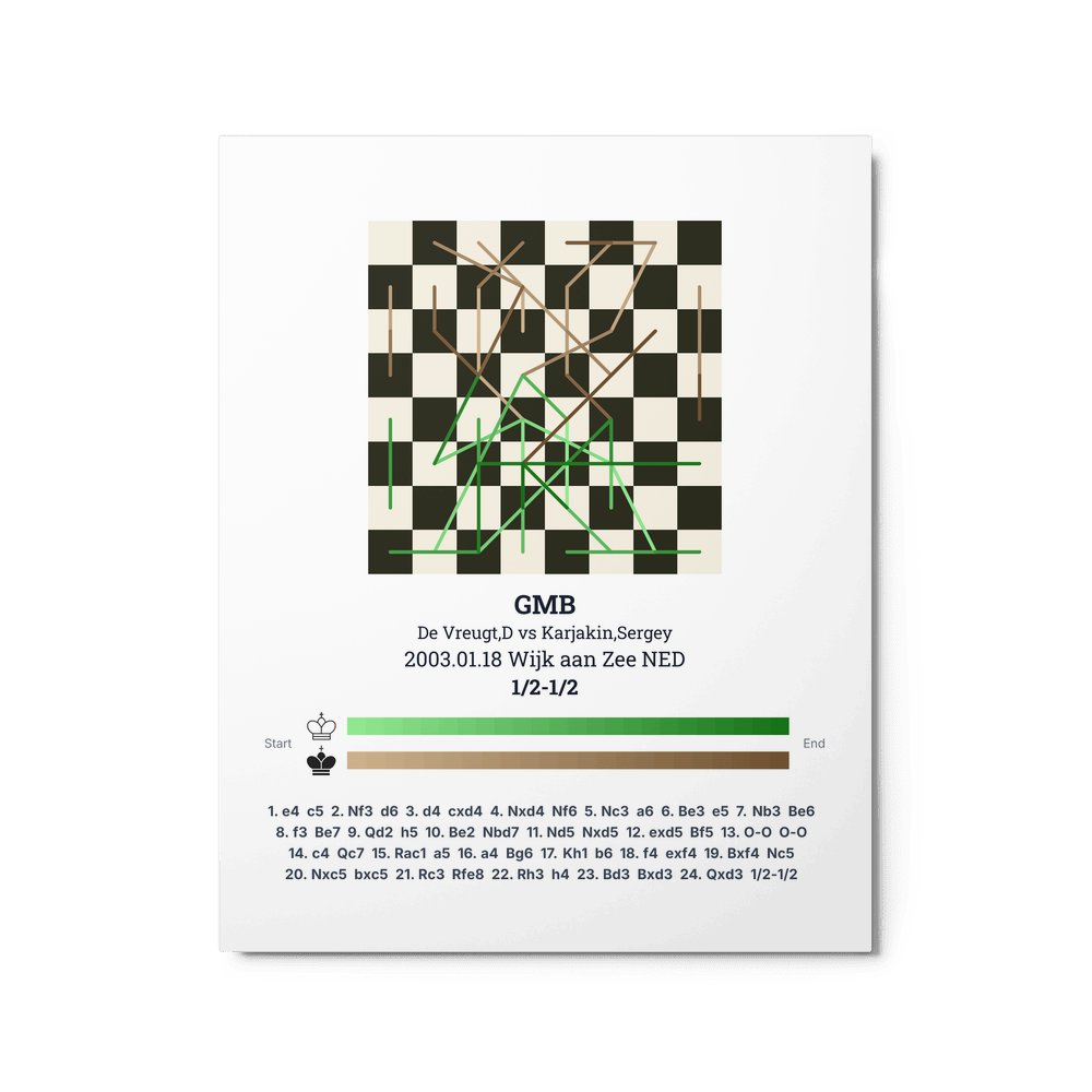 Museum-quality poster on thick, durable matte paper. A sharp, clean look for any chess visualisation.