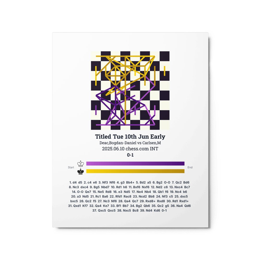 Museum-quality poster on thick, durable matte paper. A sharp, clean look for any chess visualisation.