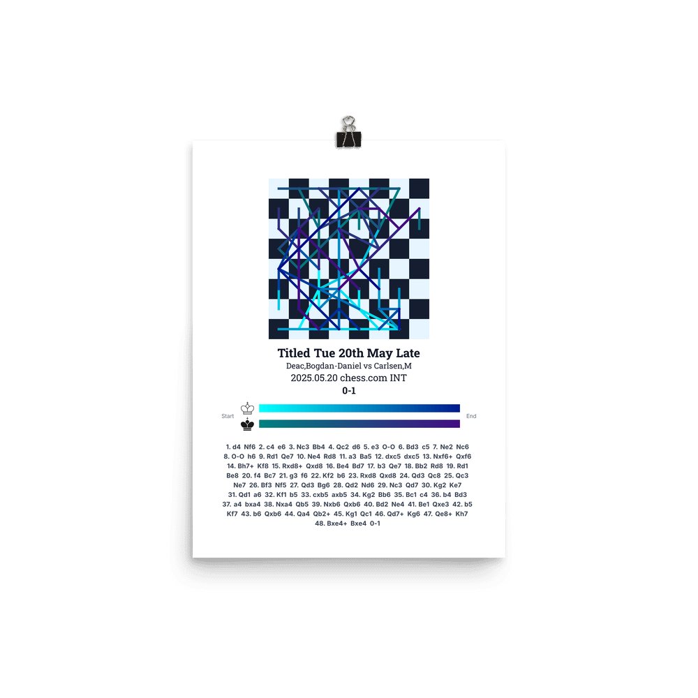 Museum-quality poster on thick, durable matte paper. A sharp, clean look for any chess visualisation.
