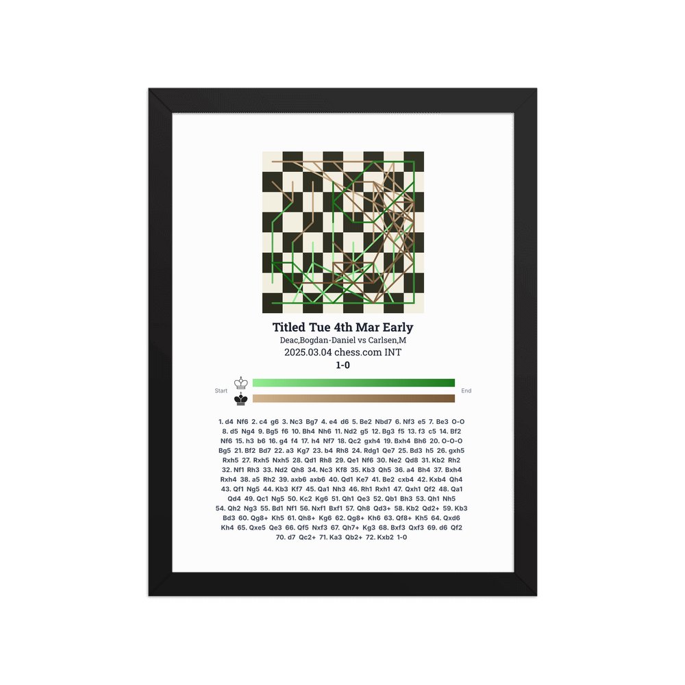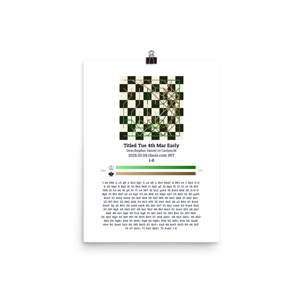 Museum-quality poster on thick, durable matte paper. A sharp, clean look for any chess visualisation.
