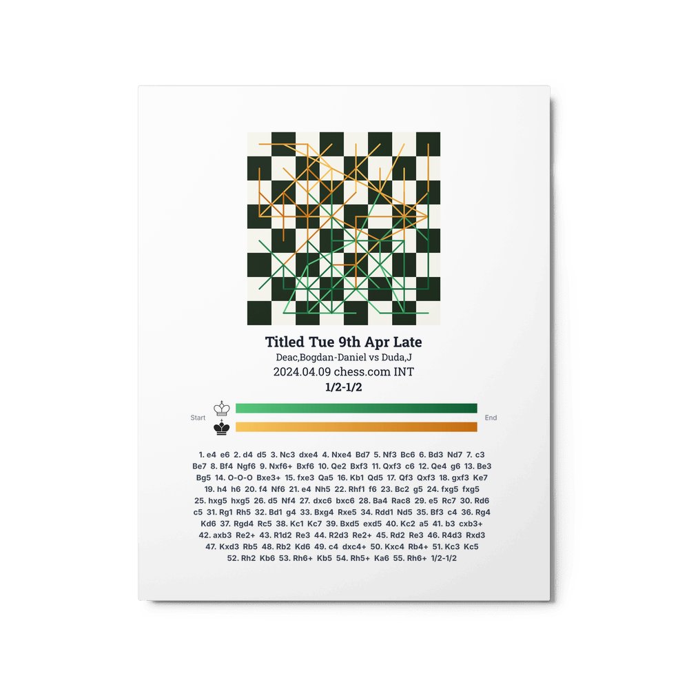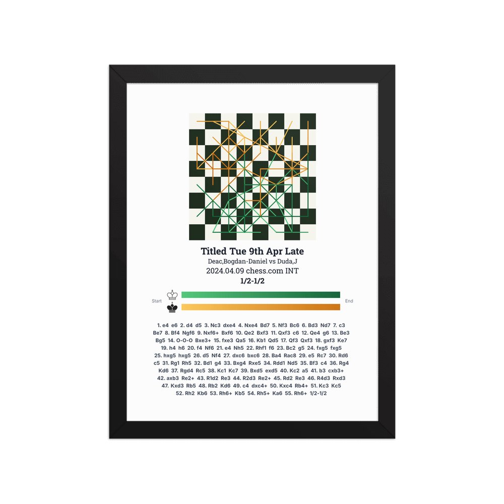 Museum-quality poster on thick, durable matte paper. A sharp, clean look for any chess visualisation.