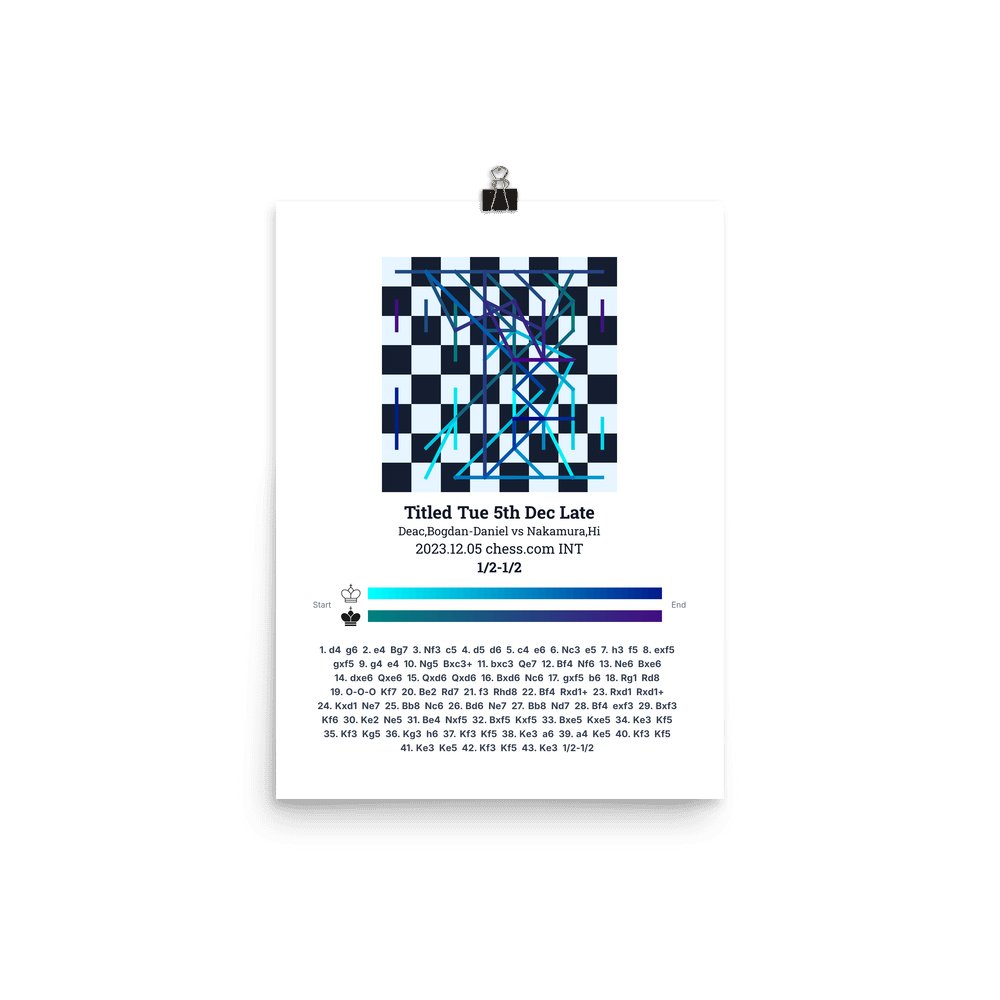 Museum-quality poster on thick, durable matte paper. A sharp, clean look for any chess visualisation.