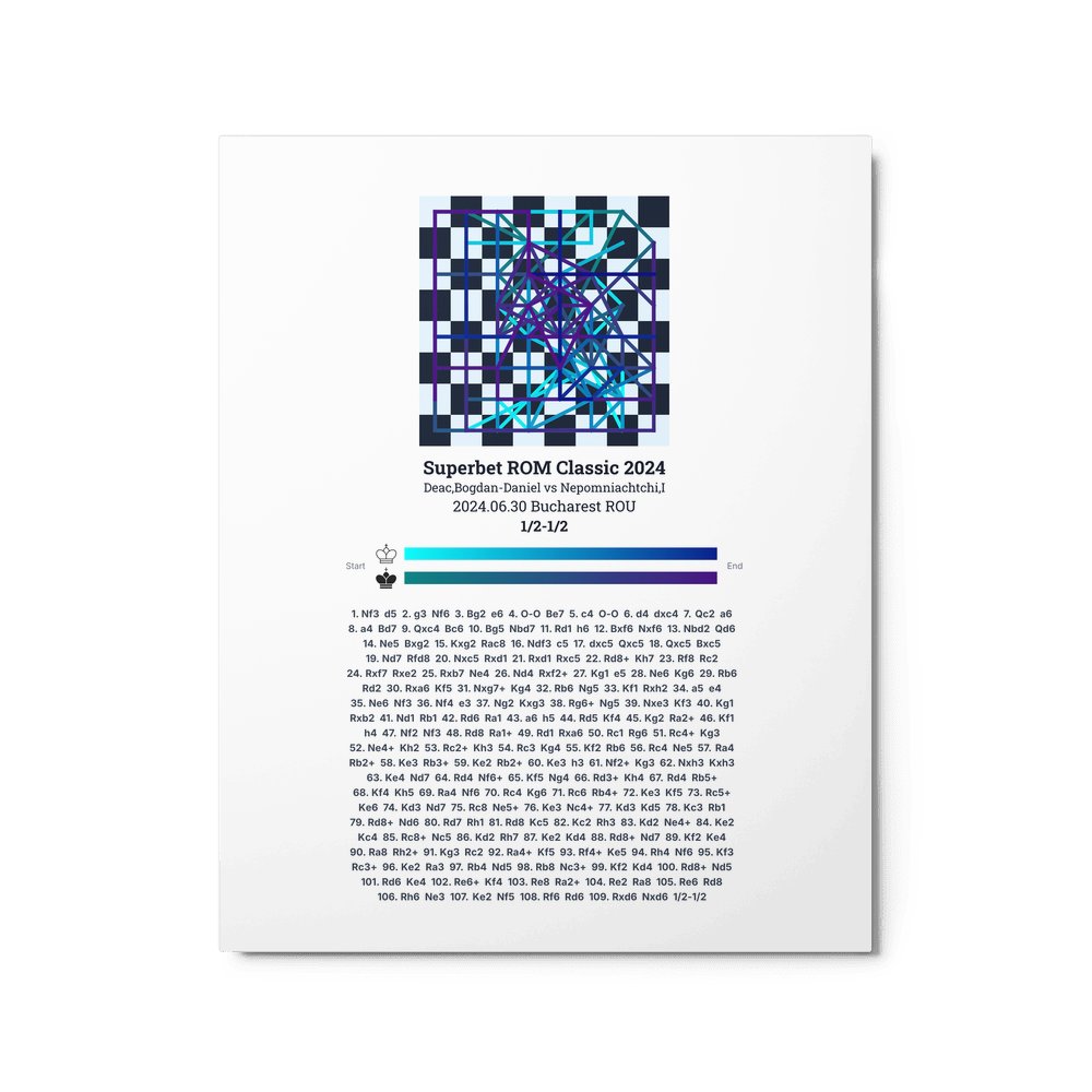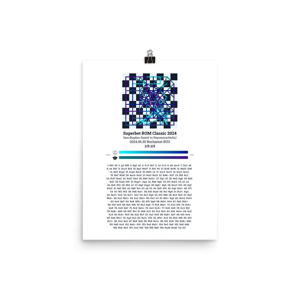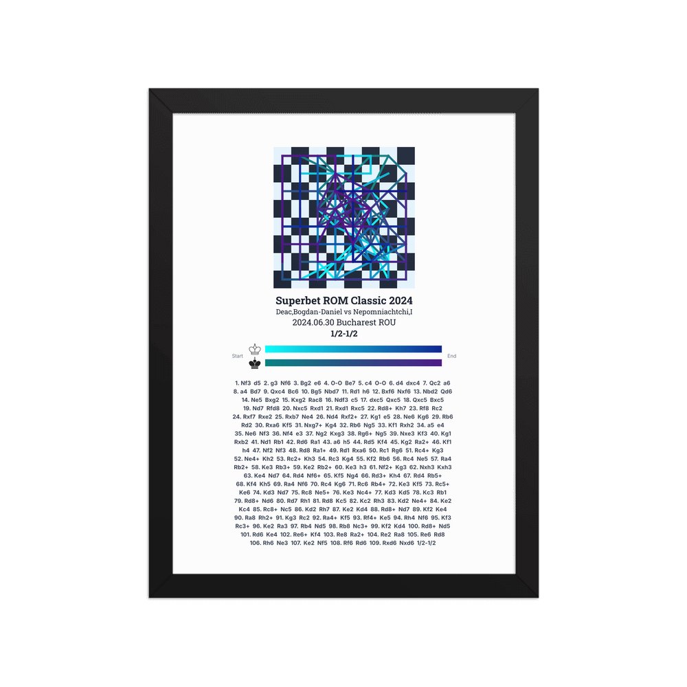 Museum-quality poster on thick, durable matte paper. A sharp, clean look for any chess visualisation.