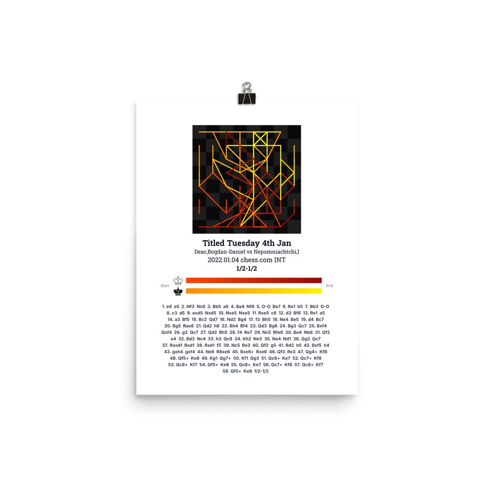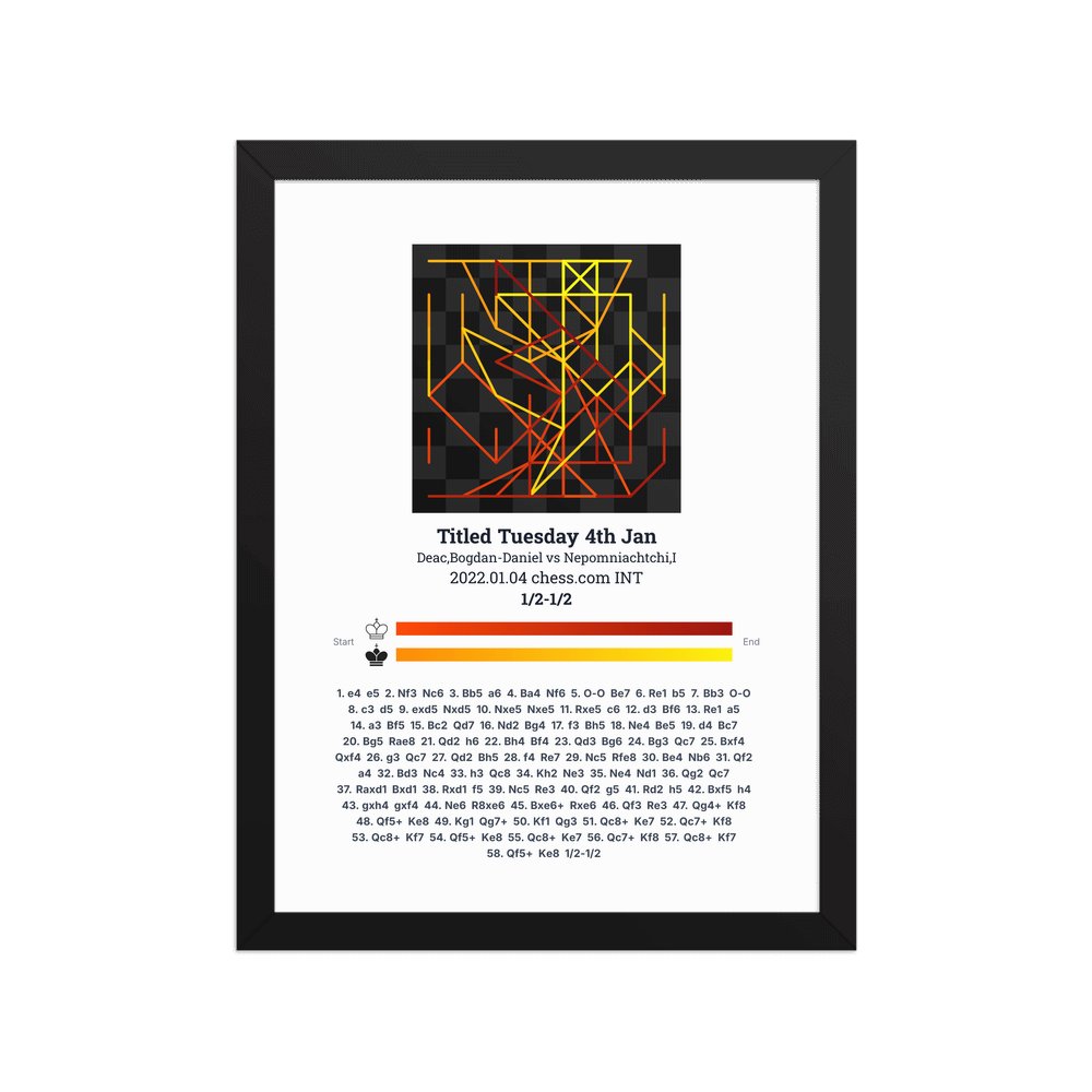 Museum-quality poster on thick, durable matte paper. A sharp, clean look for any chess visualisation.