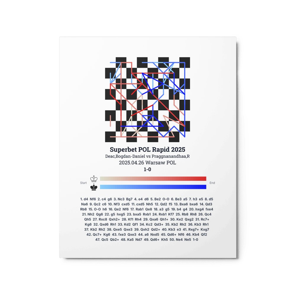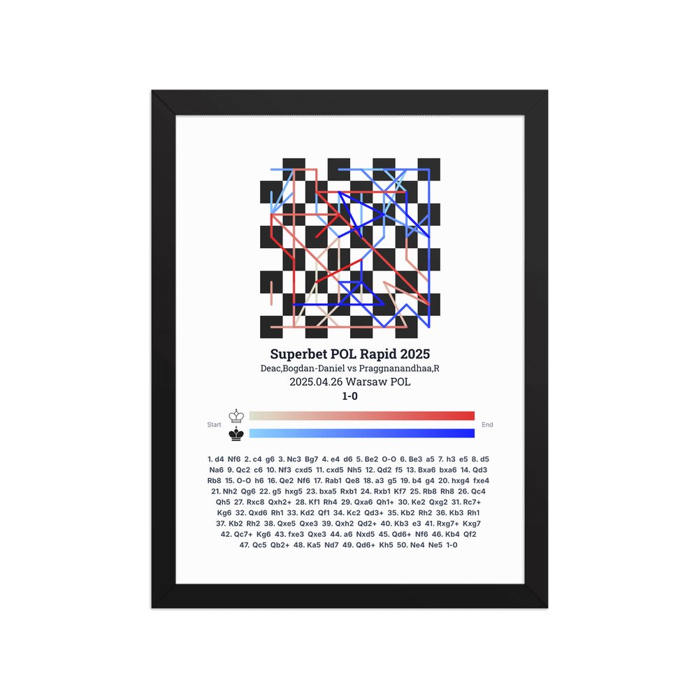 Museum-quality poster on thick, durable matte paper. A sharp, clean look for any chess visualisation.