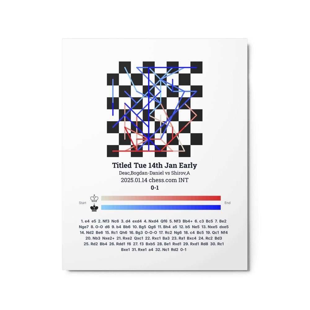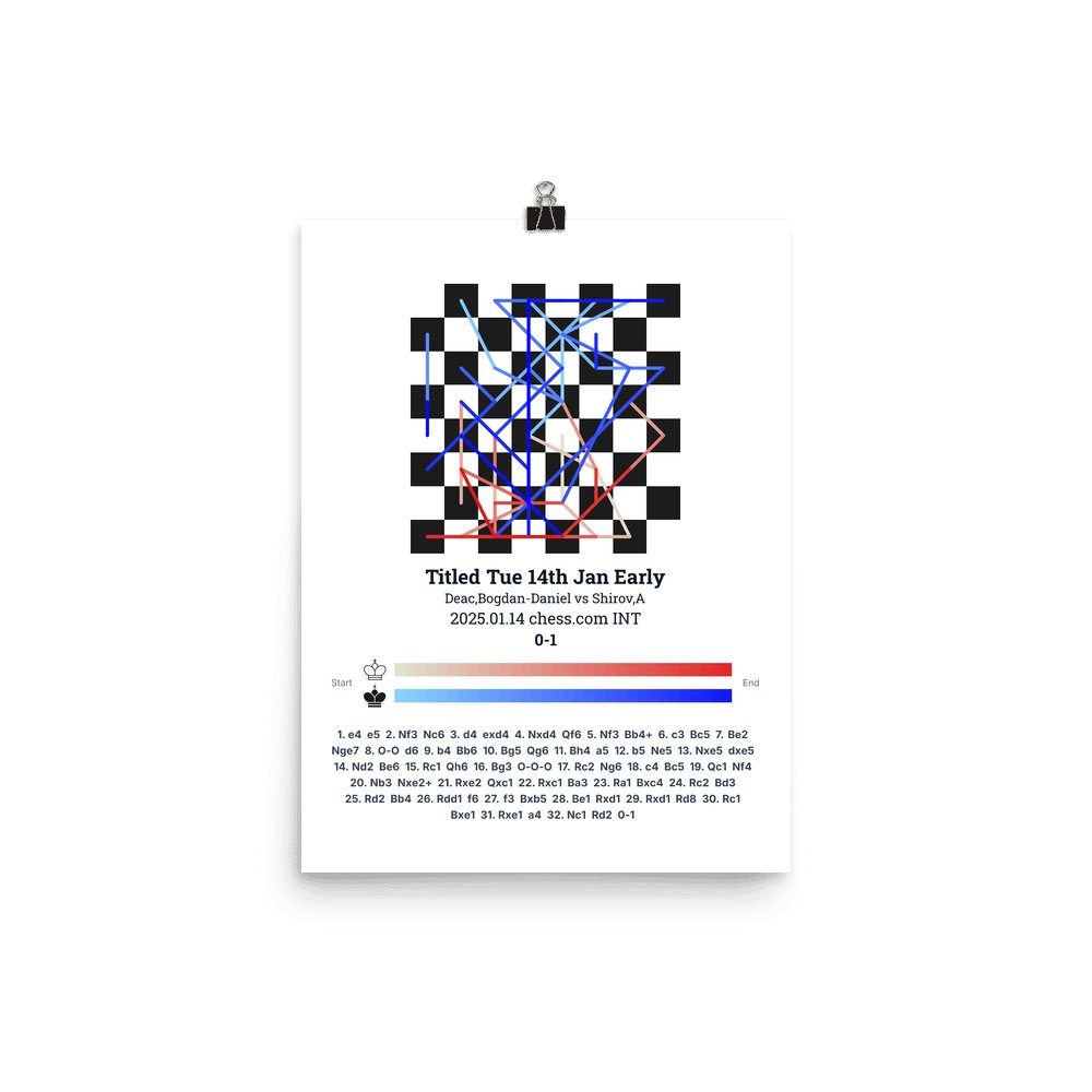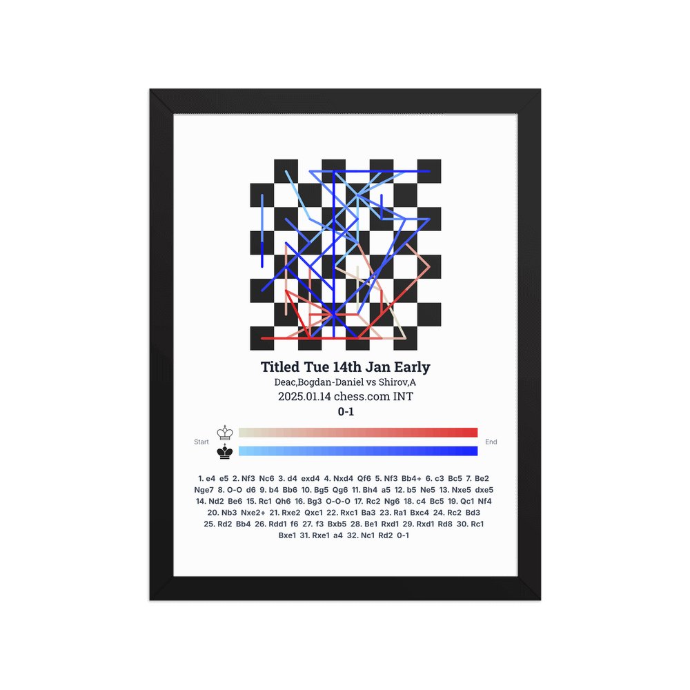 Museum-quality poster on thick, durable matte paper. A sharp, clean look for any chess visualisation.