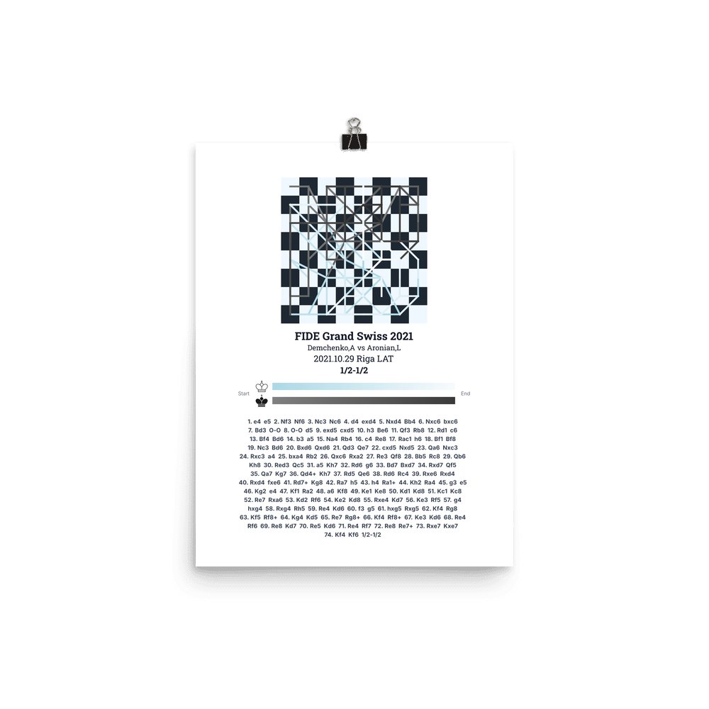 Museum-quality poster on thick, durable matte paper. A sharp, clean look for any chess visualisation.