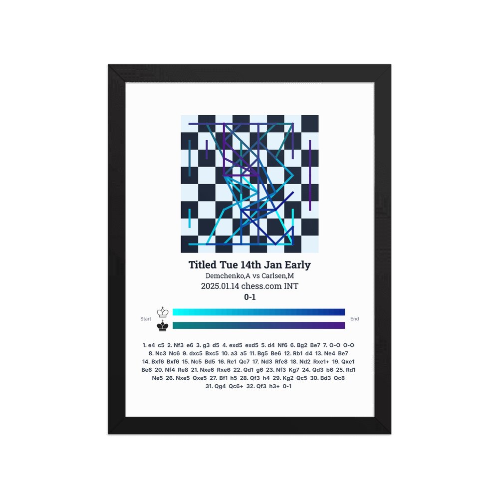 Museum-quality poster on thick, durable matte paper. A sharp, clean look for any chess visualisation.