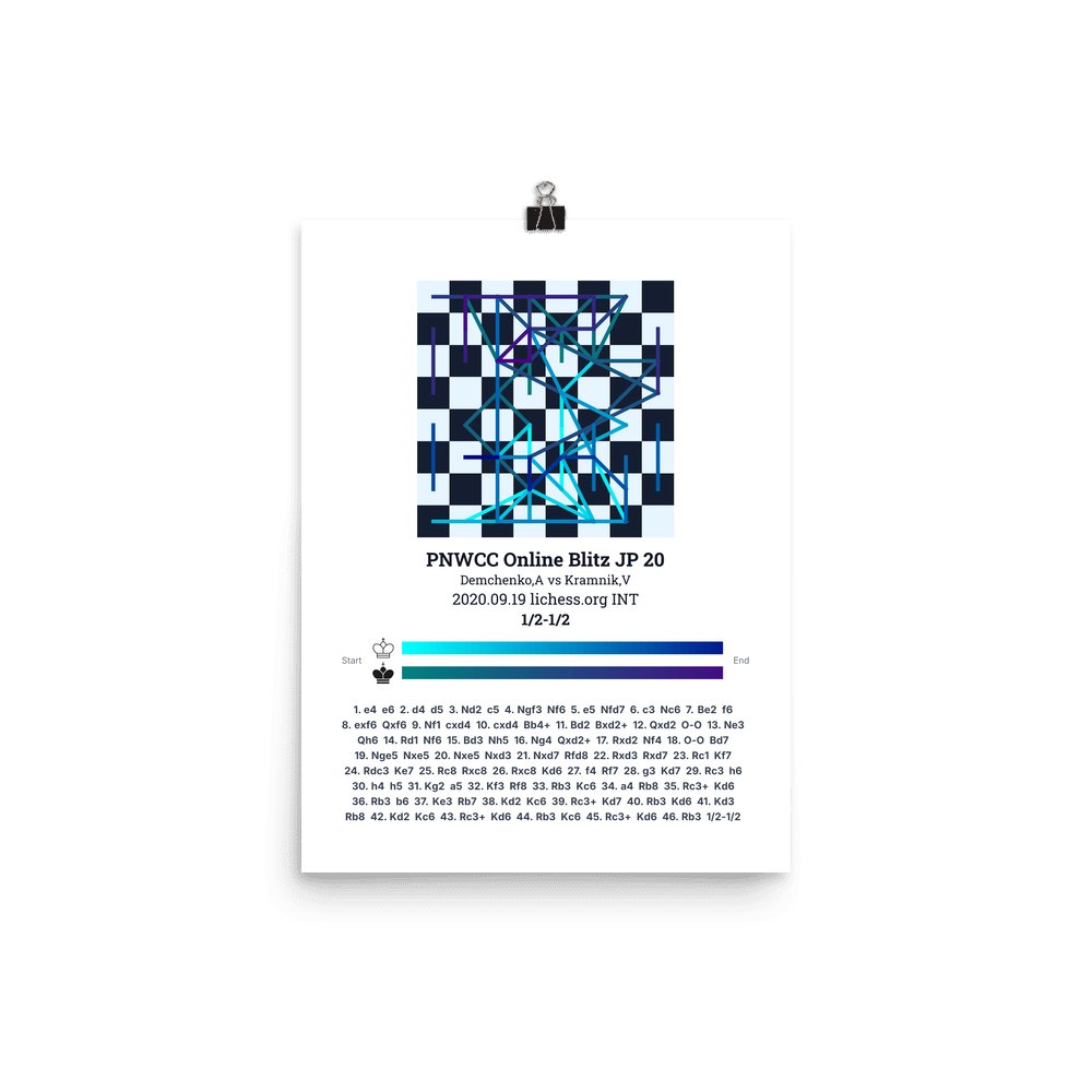 Museum-quality poster on thick, durable matte paper. A sharp, clean look for any chess visualisation.