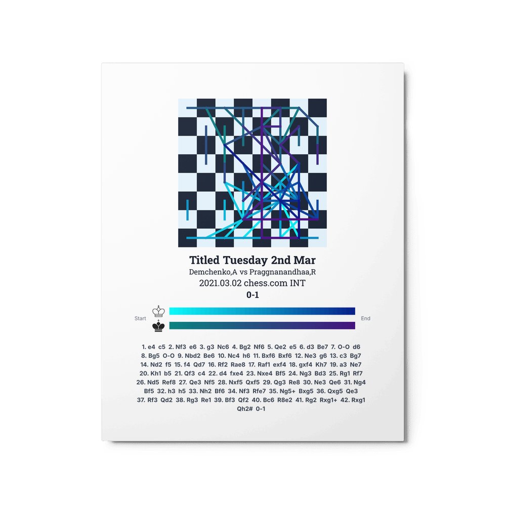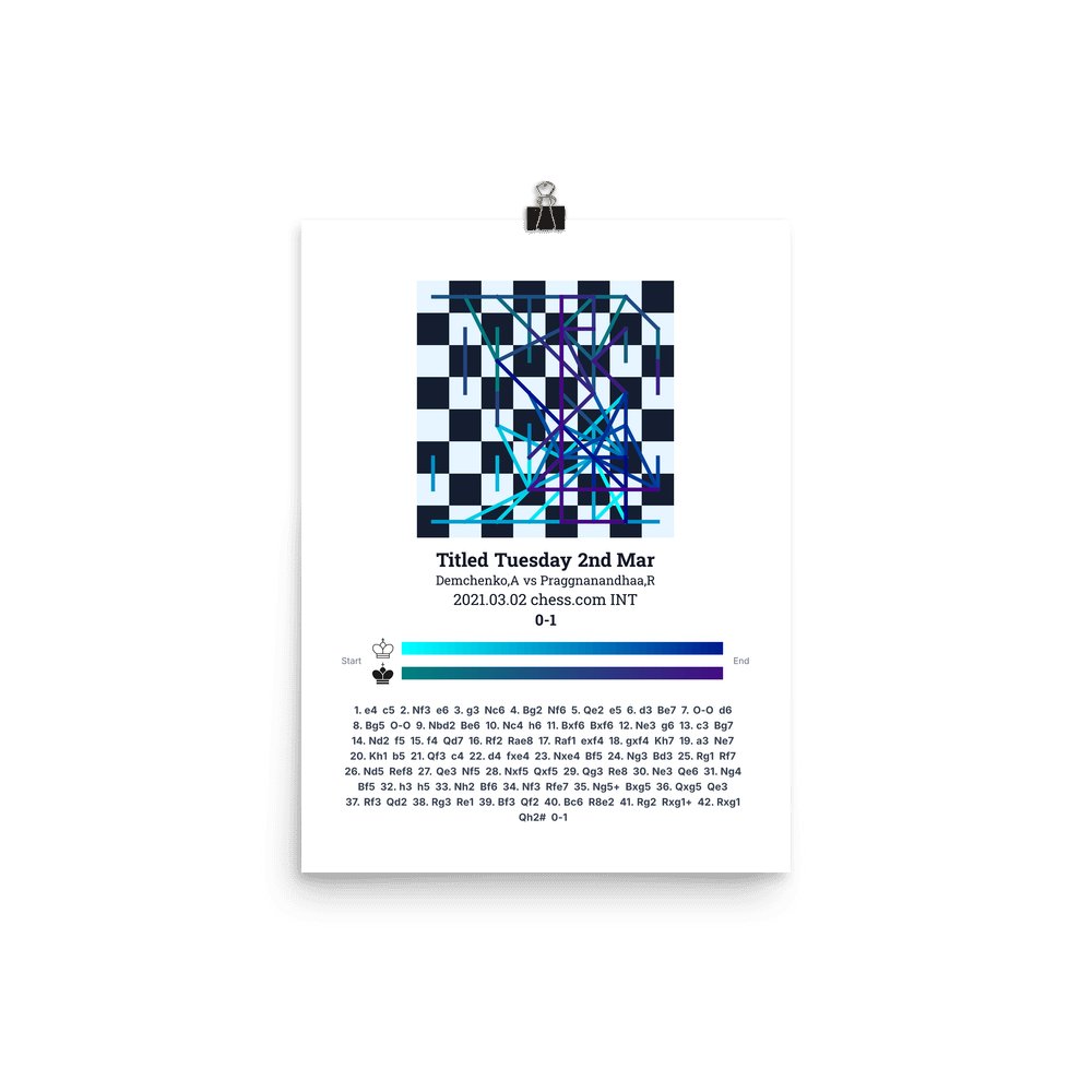 Museum-quality poster on thick, durable matte paper. A sharp, clean look for any chess visualisation.