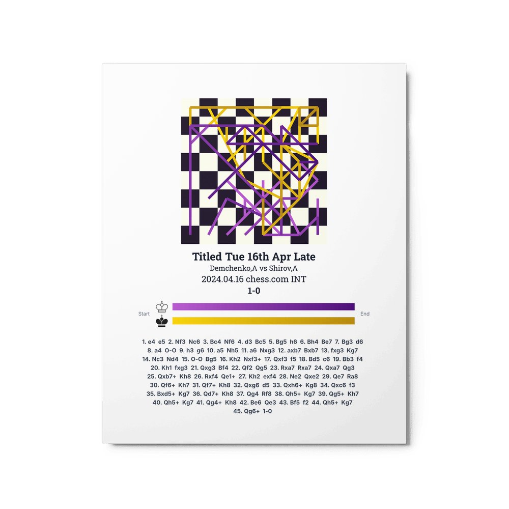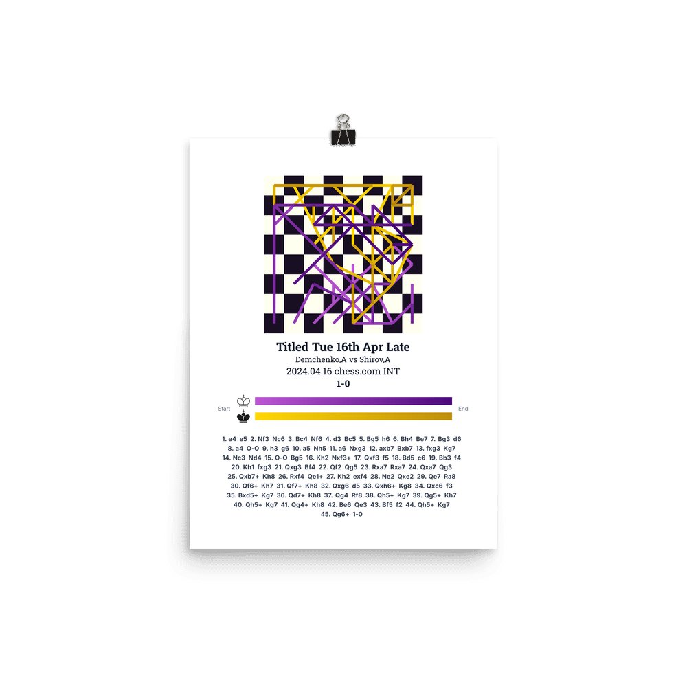 Museum-quality poster on thick, durable matte paper. A sharp, clean look for any chess visualisation.