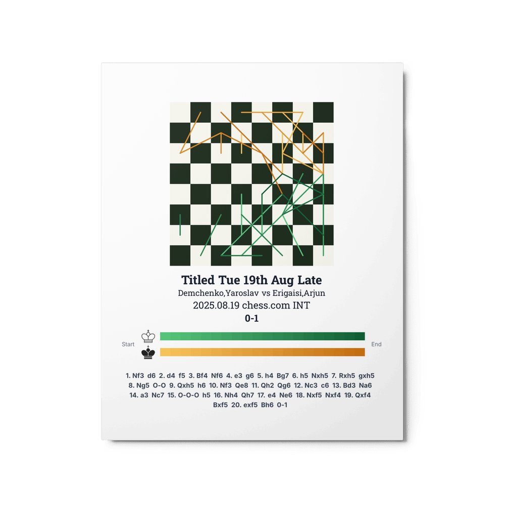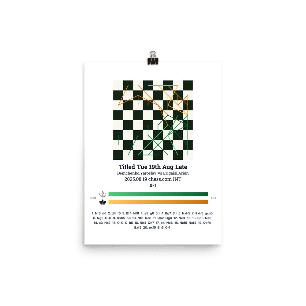 Museum-quality poster on thick, durable matte paper. A sharp, clean look for any chess visualisation.