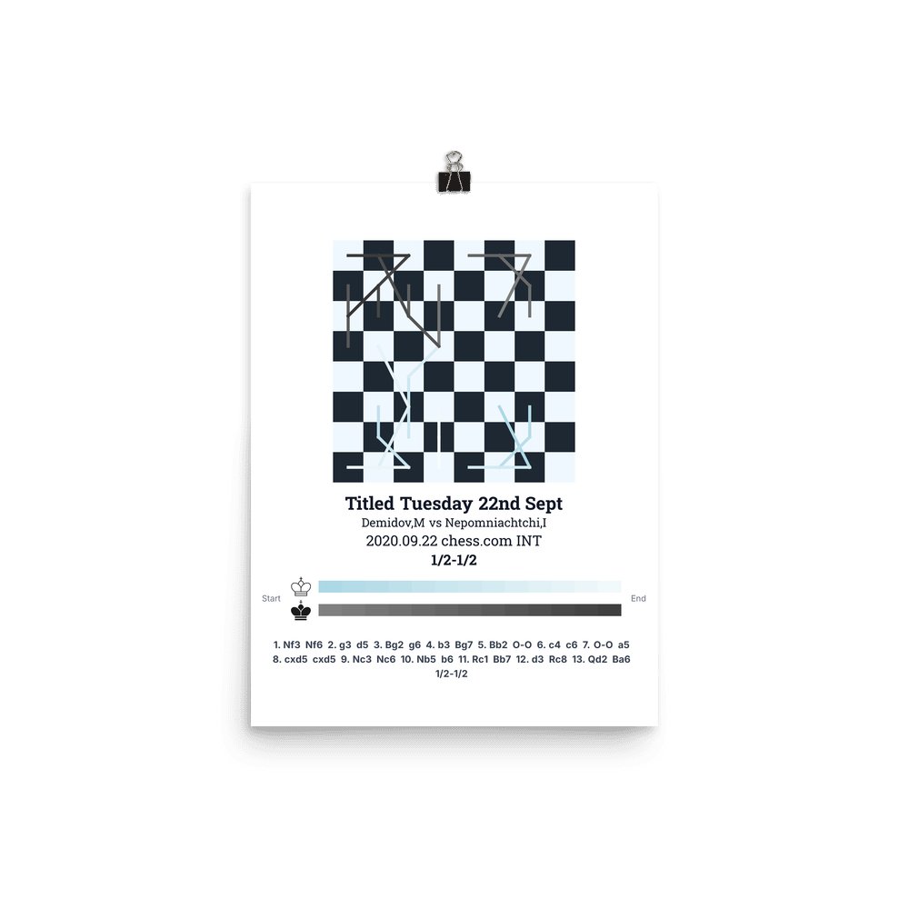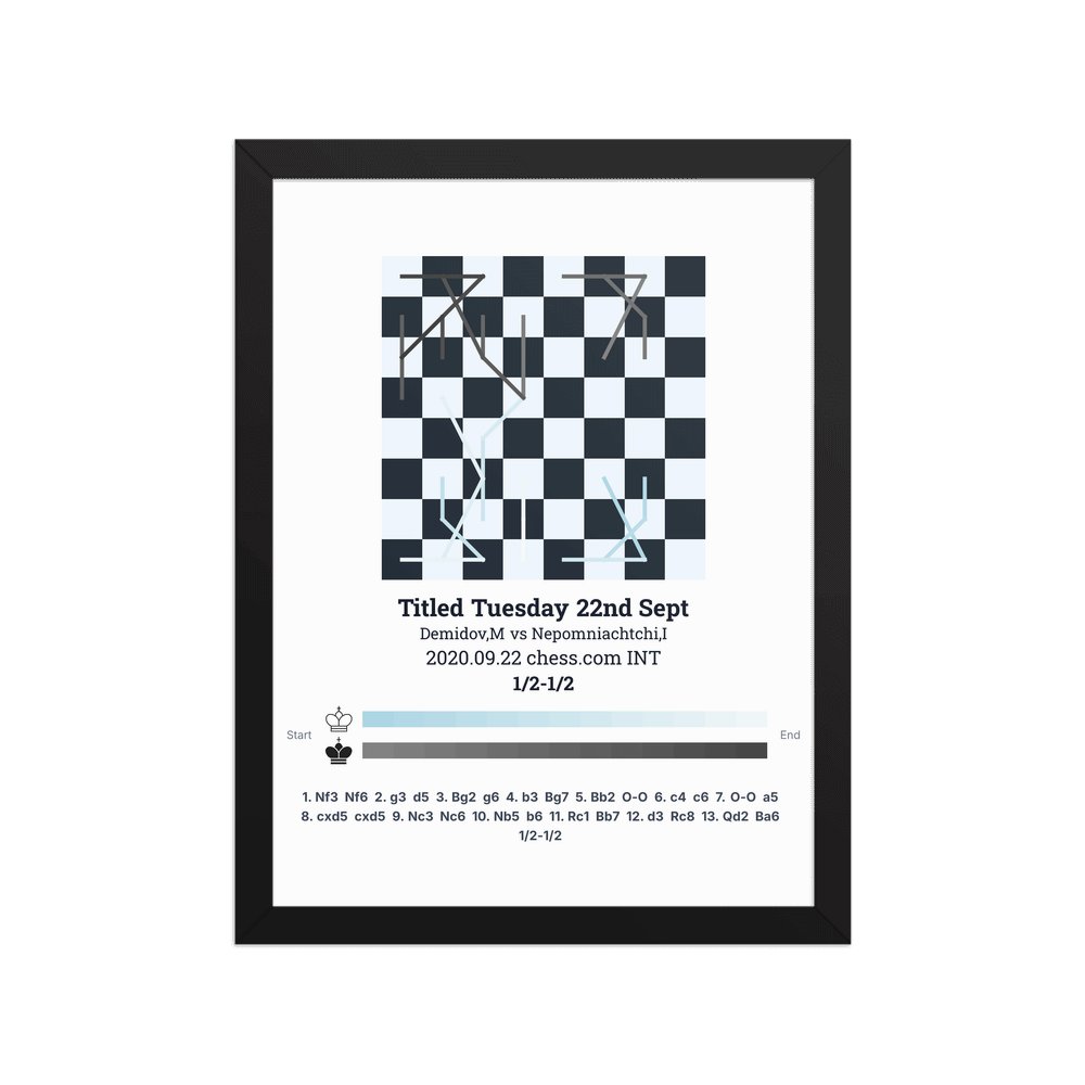Museum-quality poster on thick, durable matte paper. A sharp, clean look for any chess visualisation.