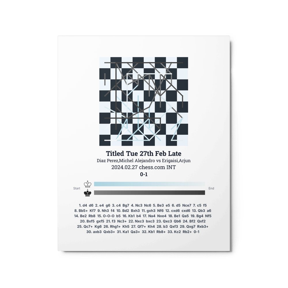 Museum-quality poster on thick, durable matte paper. A sharp, clean look for any chess visualisation.