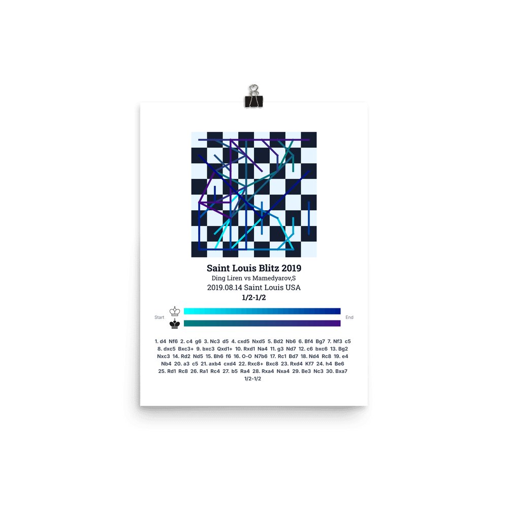 Museum-quality poster on thick, durable matte paper. A sharp, clean look for any chess visualisation.