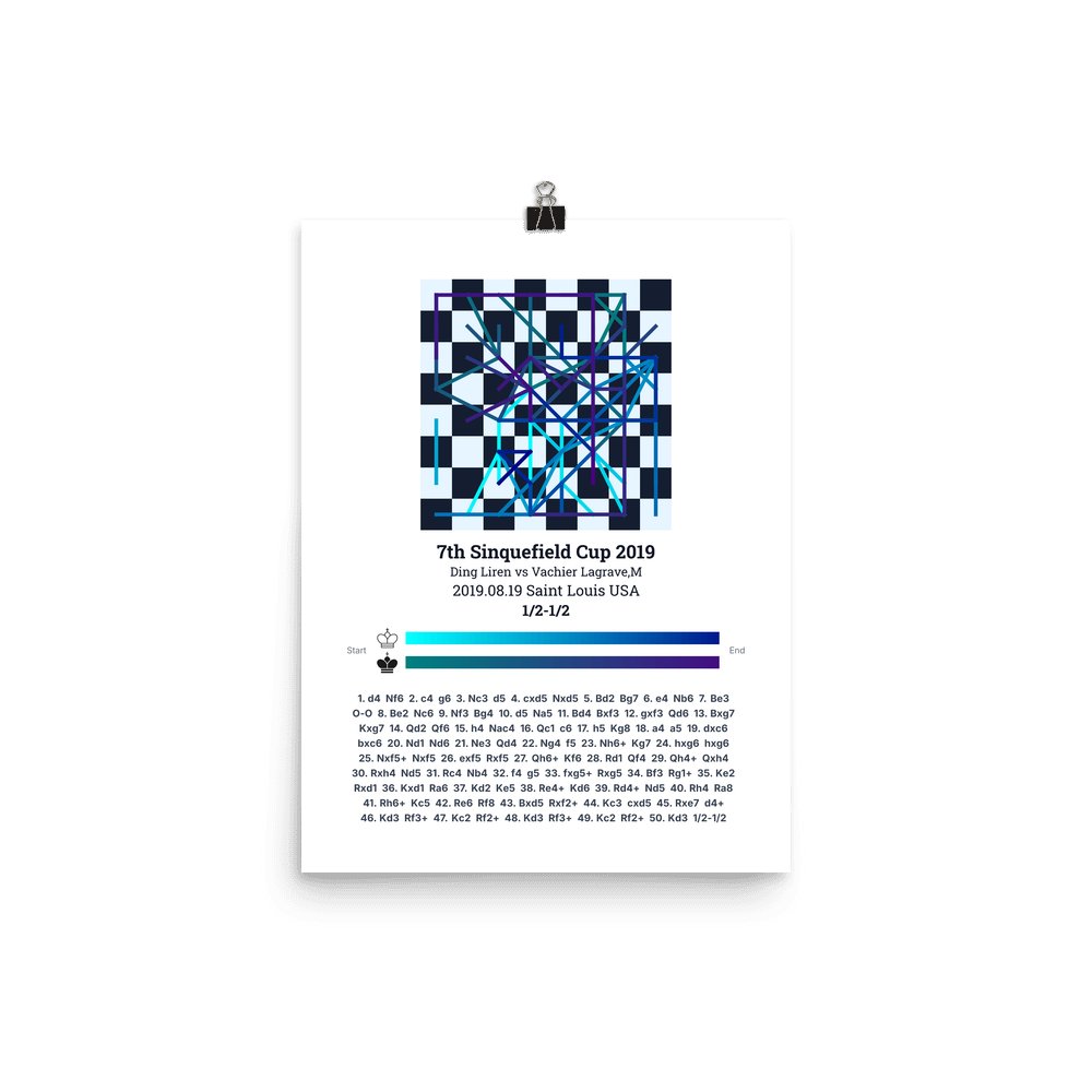 Museum-quality poster on thick, durable matte paper. A sharp, clean look for any chess visualisation.
