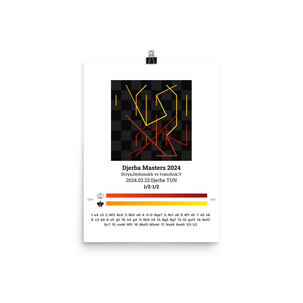 Museum-quality poster on thick, durable matte paper. A sharp, clean look for any chess visualisation.