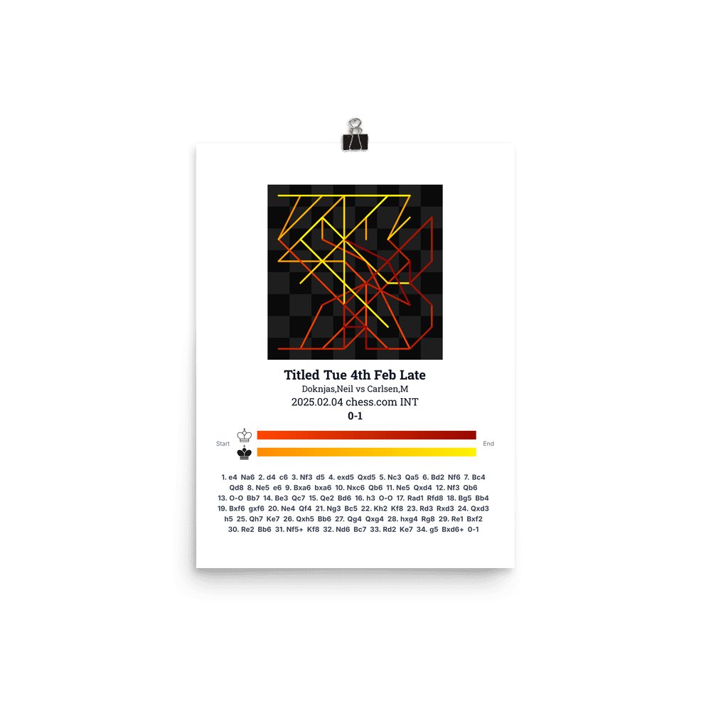 Museum-quality poster on thick, durable matte paper. A sharp, clean look for any chess visualisation.