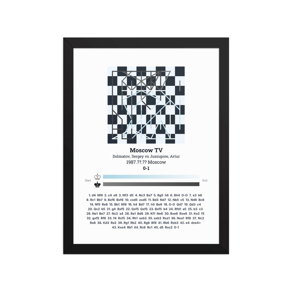 Museum-quality poster on thick, durable matte paper. A sharp, clean look for any chess visualisation.