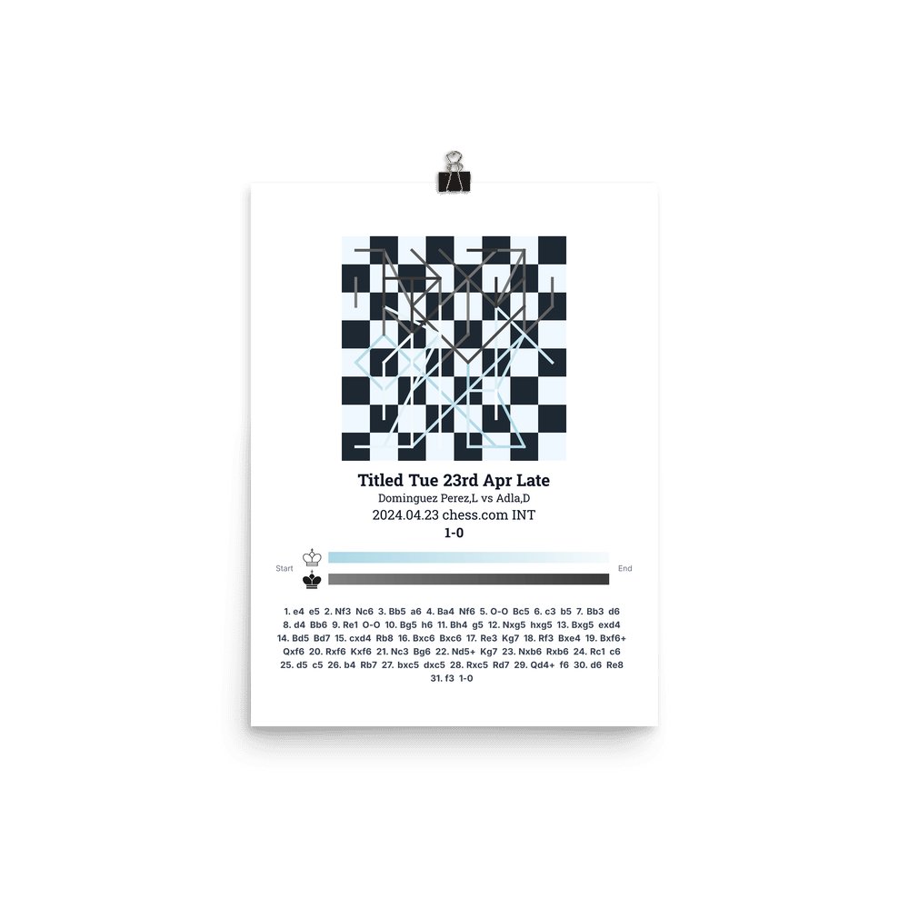 Museum-quality poster on thick, durable matte paper. A sharp, clean look for any chess visualisation.