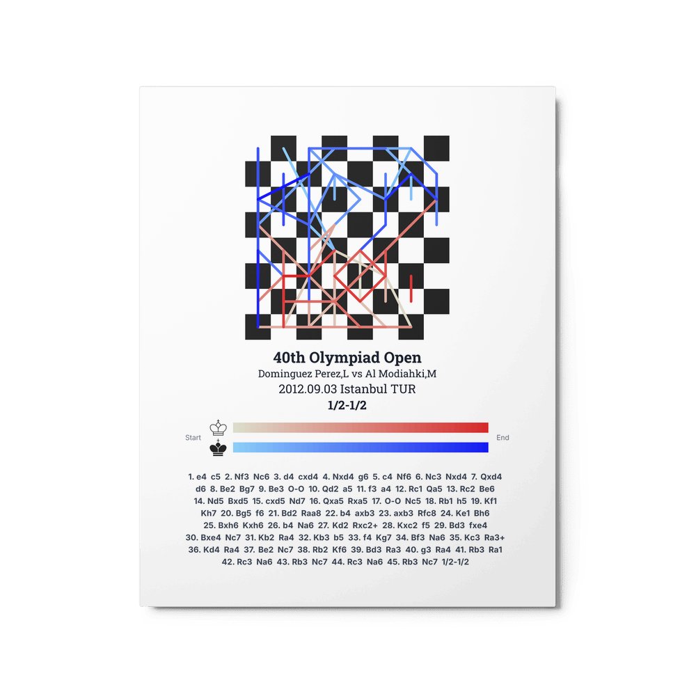 Museum-quality poster on thick, durable matte paper. A sharp, clean look for any chess visualisation.