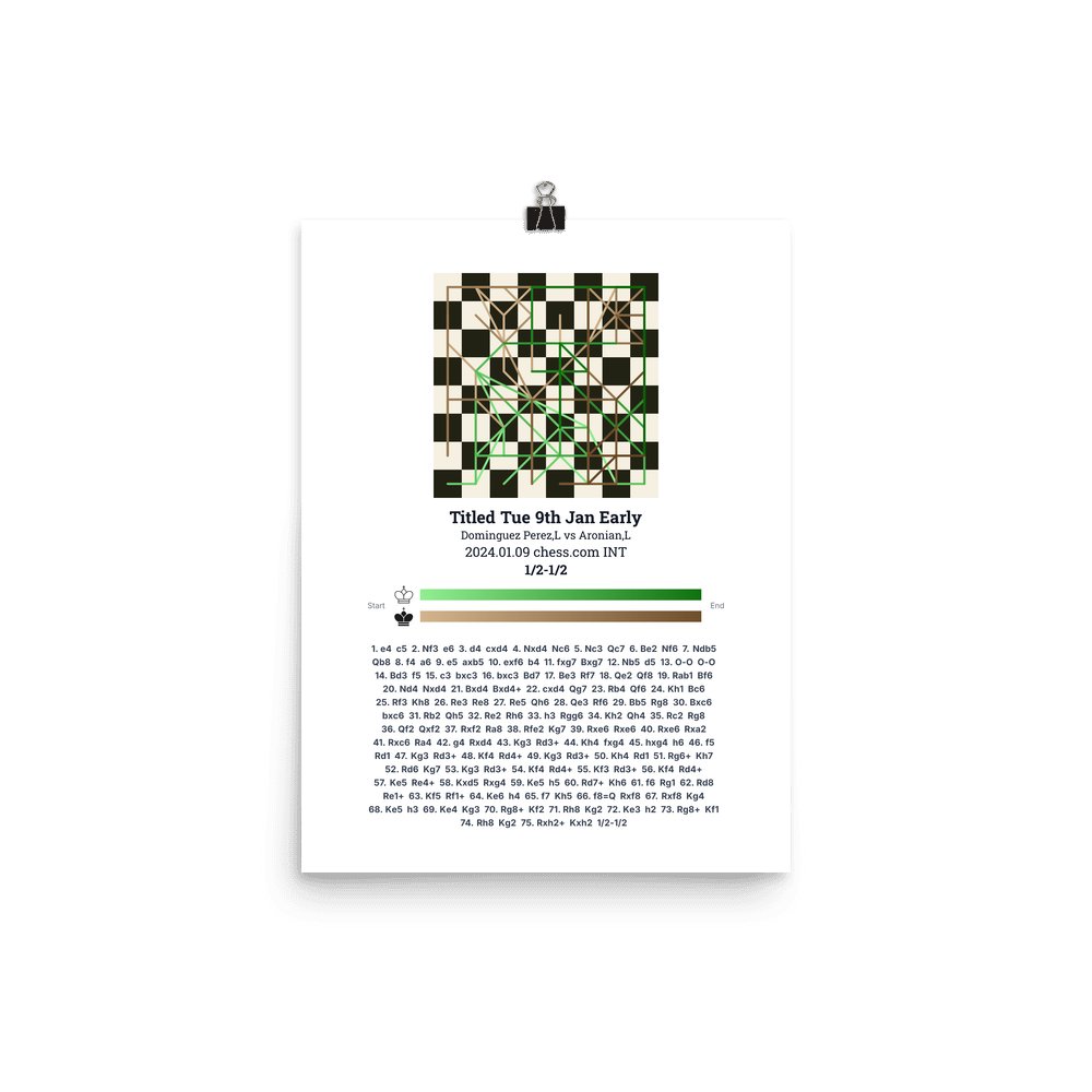 Museum-quality poster on thick, durable matte paper. A sharp, clean look for any chess visualisation.