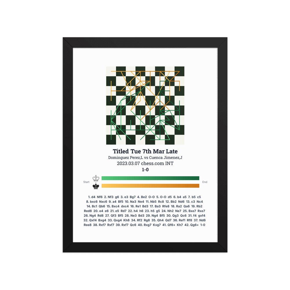 Museum-quality poster on thick, durable matte paper. A sharp, clean look for any chess visualisation.