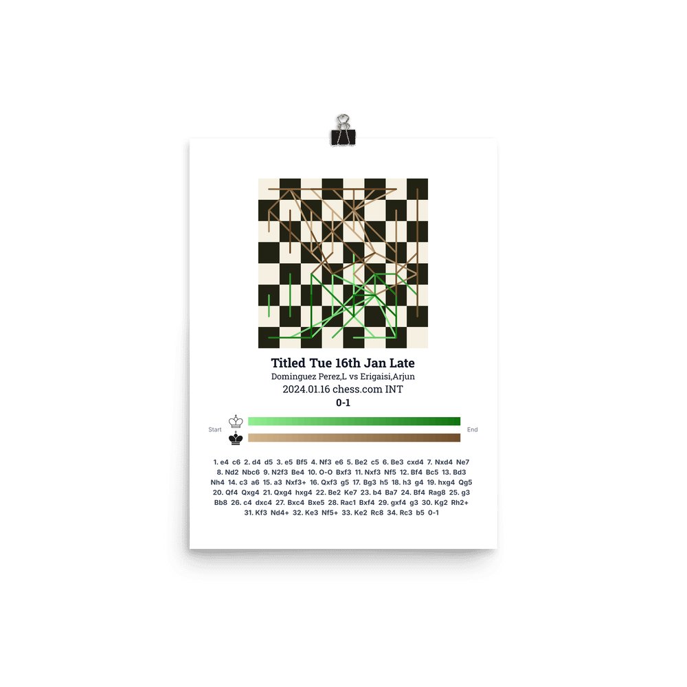 Museum-quality poster on thick, durable matte paper. A sharp, clean look for any chess visualisation.